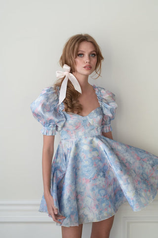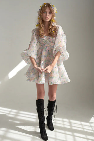 Wear this wrap floral mini dress at your next party. Ruched designs and puff sleeves are on trend for the perfect party dress. Wrap mini dresses are versatile and can be worn as a cocktail dress, evening dress or summer dress. Accessorize your vibrant floral minidress with sparkly accessories and pouches.