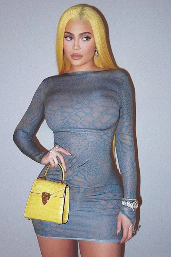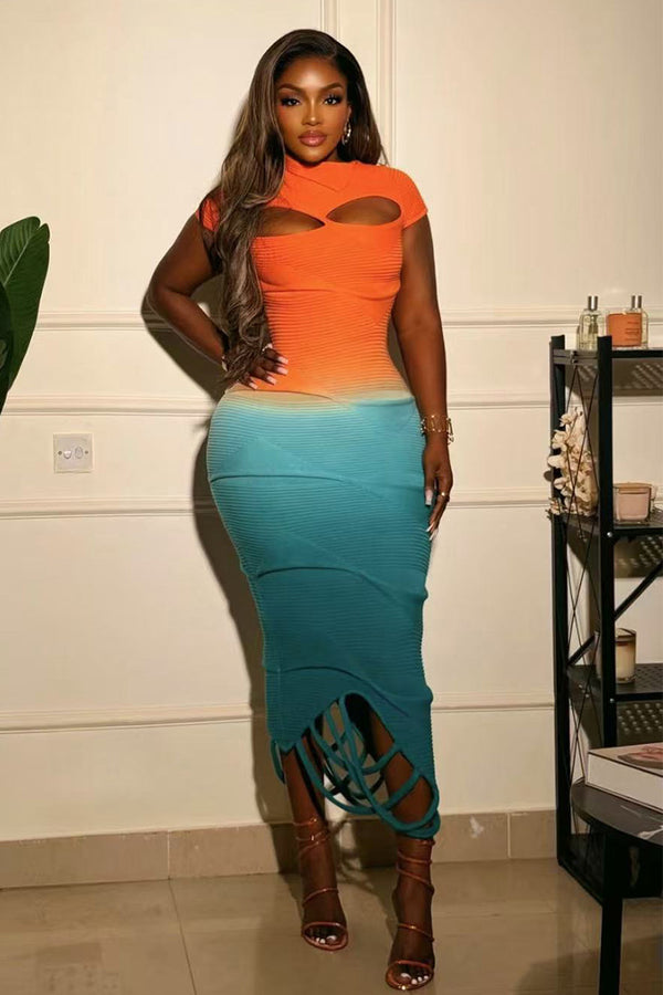 Tie Dye Cut Out Mesh Bodycon Midi Dress Long Sleeve