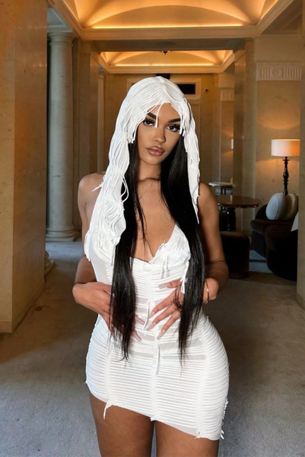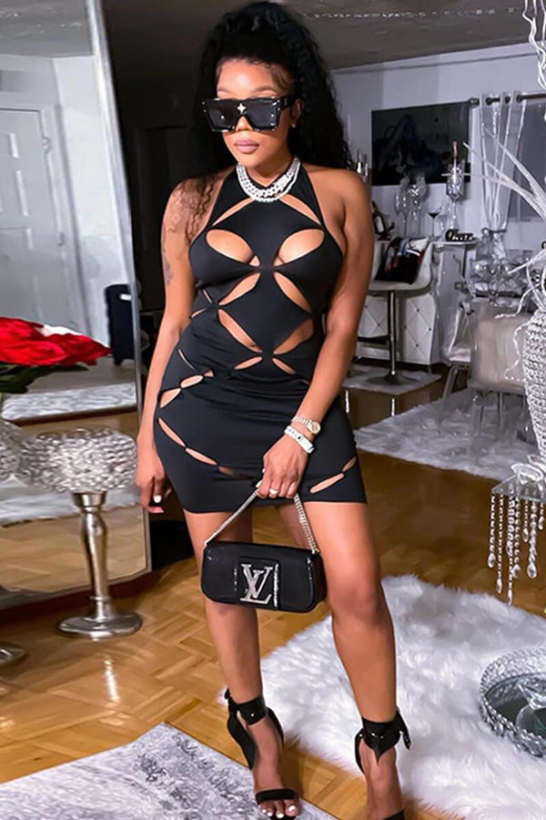 Ring Hollow Cross Sleeveless Ribbon Mini Dress