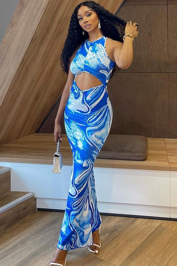 Sleeveless Floral Printed Bodycon Maxi Dress