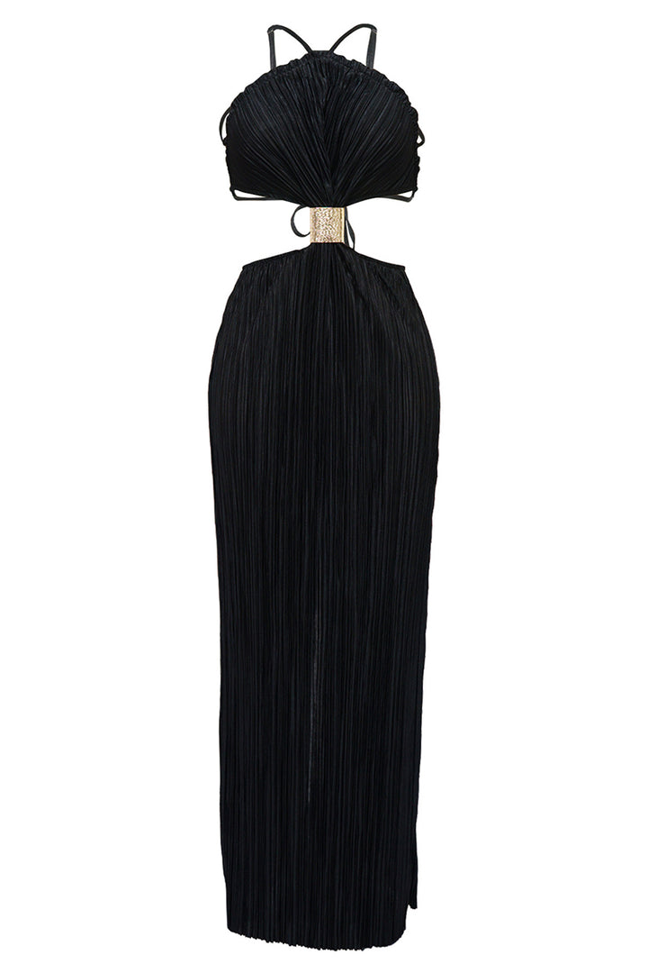 - Detail: Backless, cutout, gold detailed