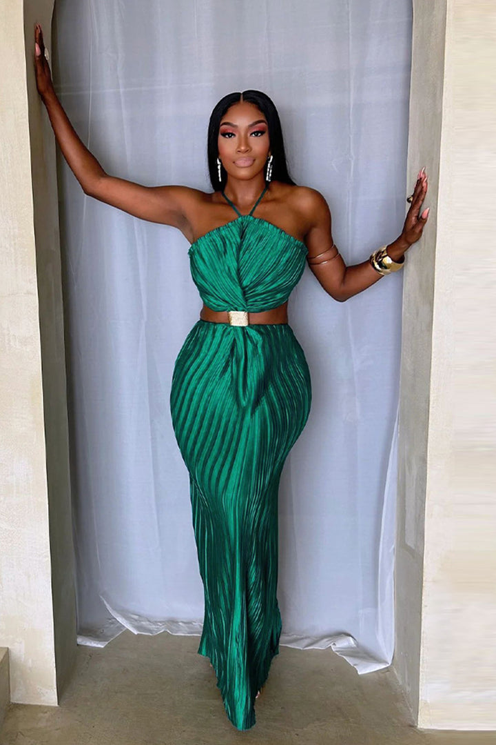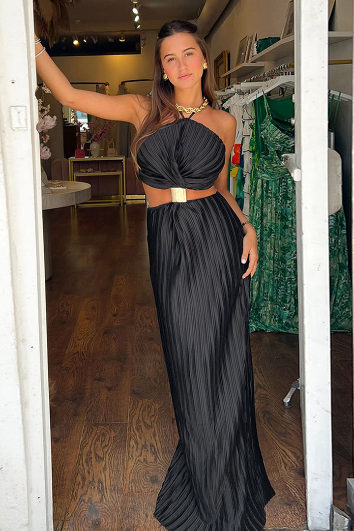 - Emphasize the irresistible magnetism of your silhouette with our Maxi Dress. Elevate your fashion statement with the essential chain belt for a daring, avant-garde touch. Ideal for any casual occasion, accessorize to elevate your appearance.