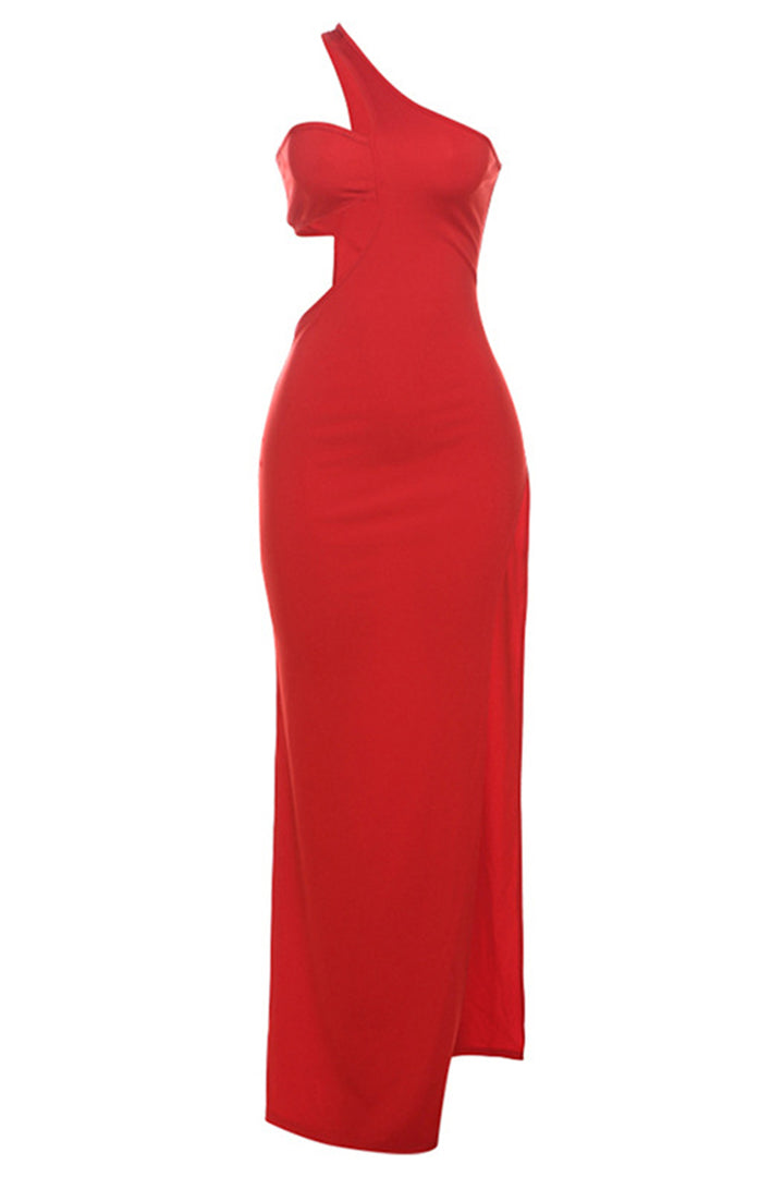 One Shoulder Cutout Sleeveless Slit Maxi Dress