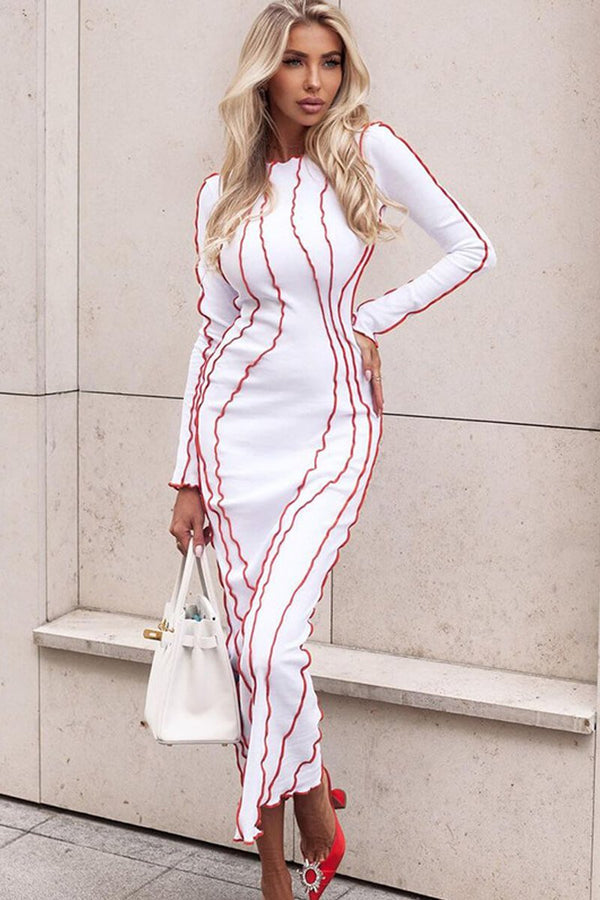 Multicolor Striped Round Neck Long Sleeve Bodycon Dress