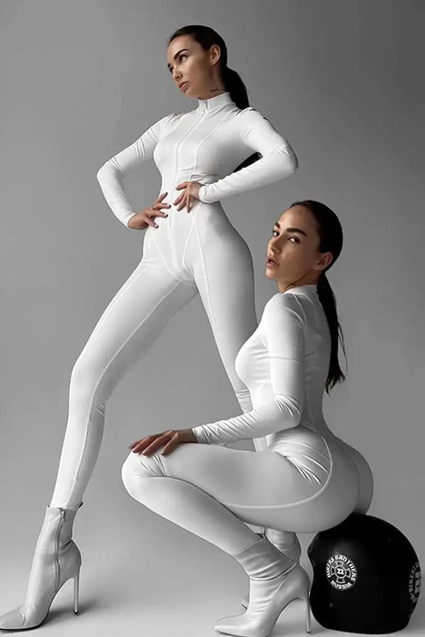 Solid Zip Front Bodycon Jumpsuit Long Sleeve