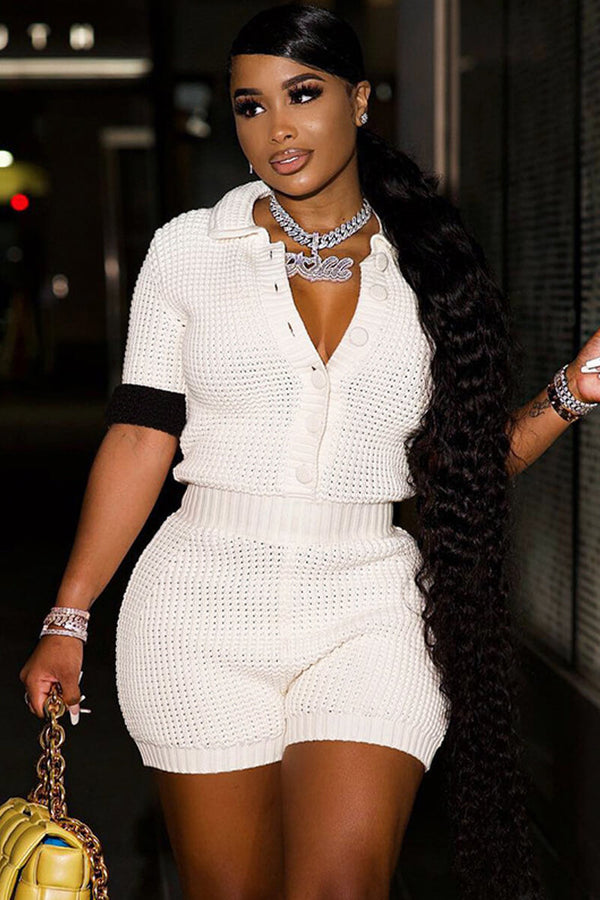 Round Neck Hollow Out Knitted Bodycon Romper Short Sleeve