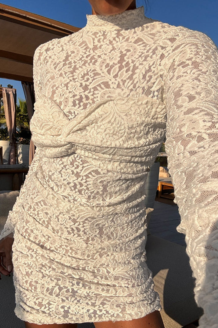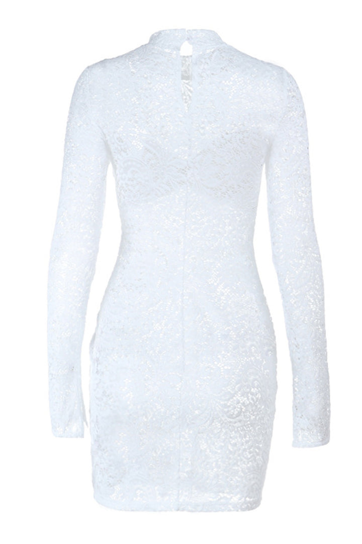 - Elevate your elegance with our exquisite white lace dress! Crafted from high - quality lace, it showcases an intricate floral pattern that exudes femininity and sophistication. The long sleeves add a touch of modesty while the body - hugging silhouette accentuates your curves, making you stand out in any crowd. Ideal for a romantic dinner, a cocktail party, or a special occasion, this dress is a must - have addition to your wardrobe.