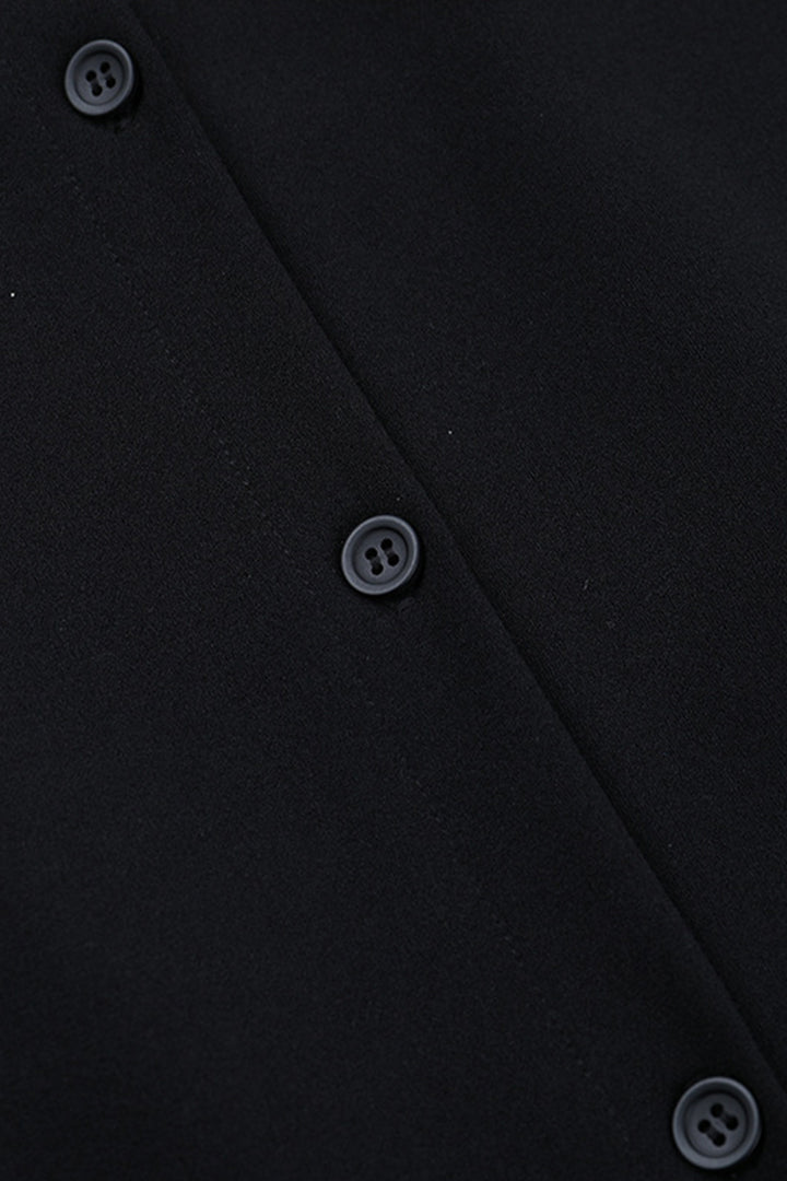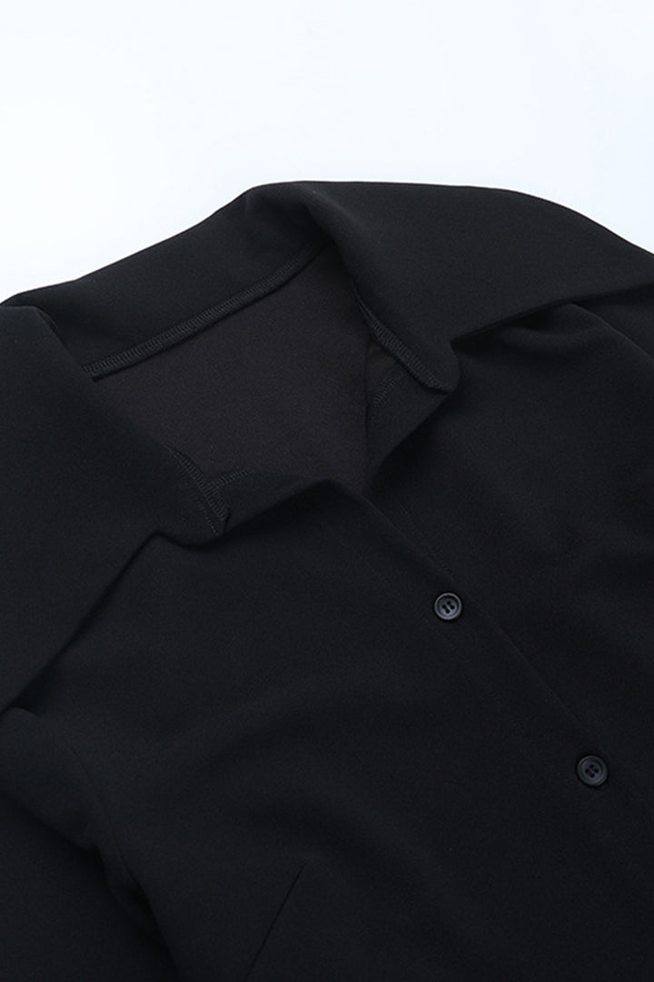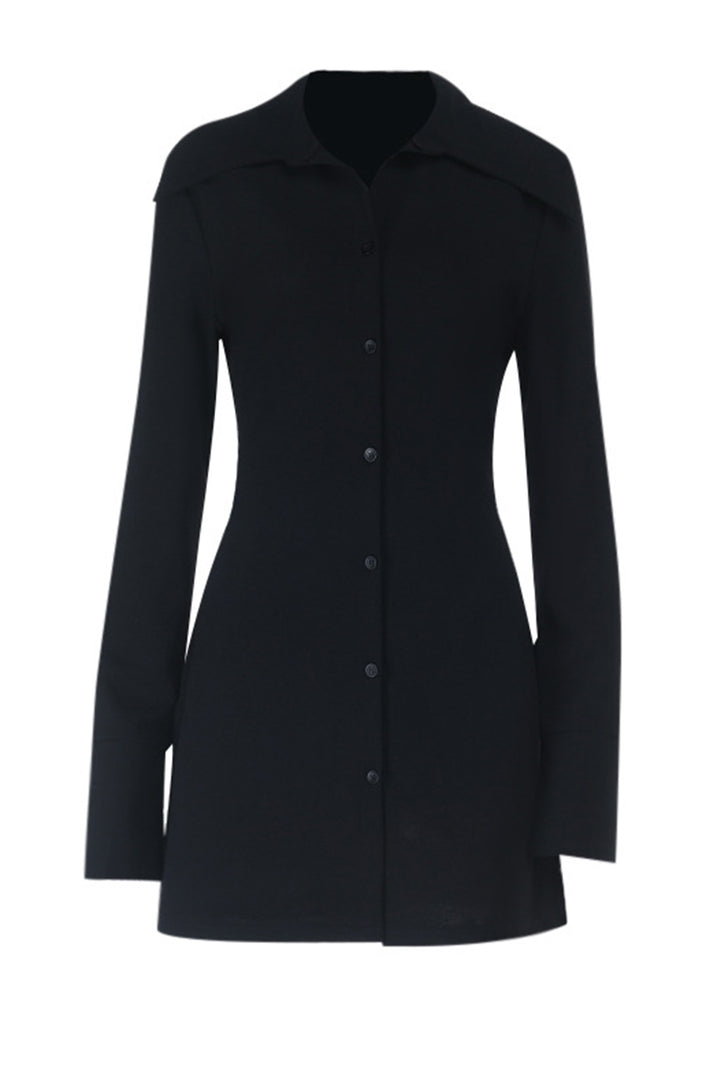 - Elevate your wardrobe with this sleek, form-fitting black shirt dress, featuring a tailored collar and long sleeves for polished elegance. Designed to flatter your silhouette, its versatile style transitions effortlessly from daytime chic to evening glam. The minimalist design is accentuated with gold accessories for a refined touch. Crafted from premium fabric, it offers comfort and confidence for any occasion. Pair with heels or boots to own your look—effortless, powerful, and eternally stylish.