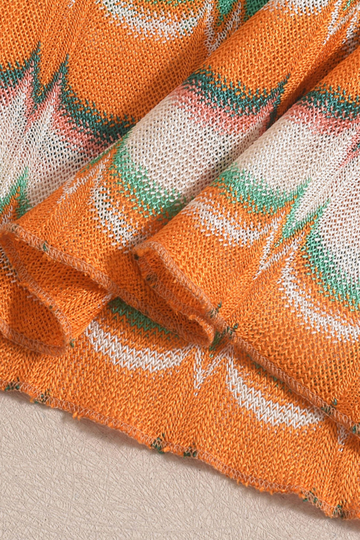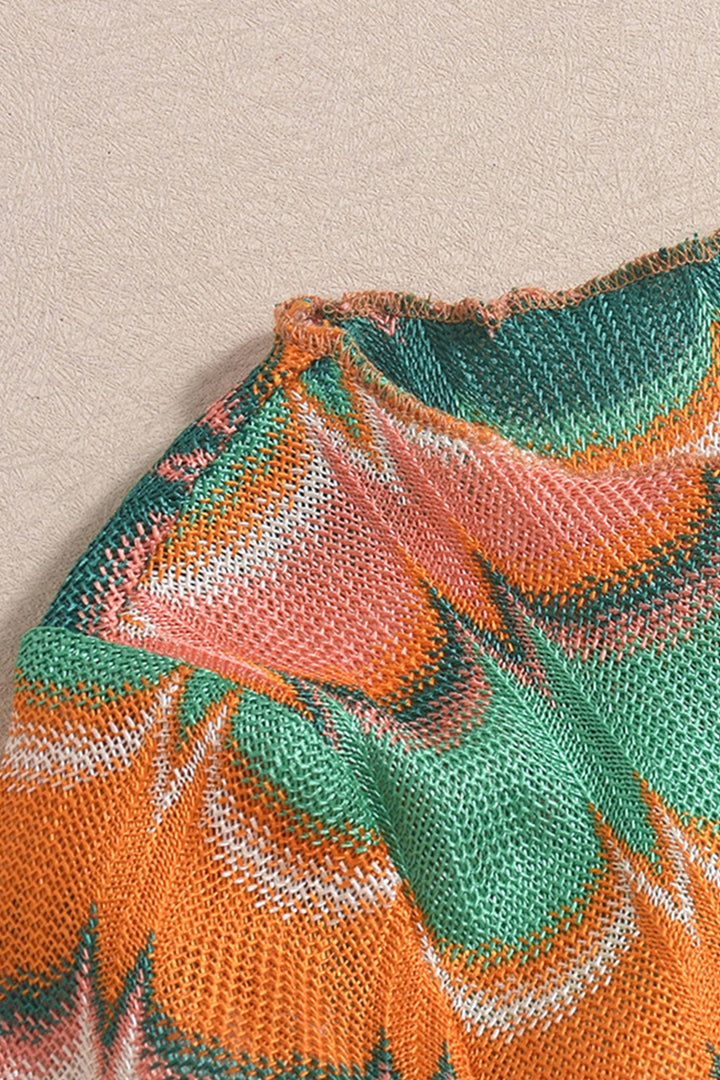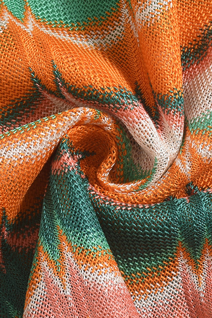 • The cropped top features long sleeves and a trendy cut out design at the waist, paired with a high waisted mini skirt. The eye catching wavy pattern in vivid orange, green and white is a true head turner. Made from soft, stretchy fabric for all - day comfort. Whether it's a beach day or a night out.