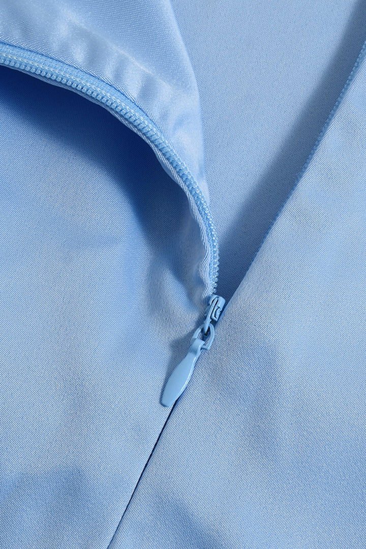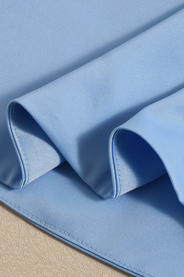 - Detail: Side tie, split hem