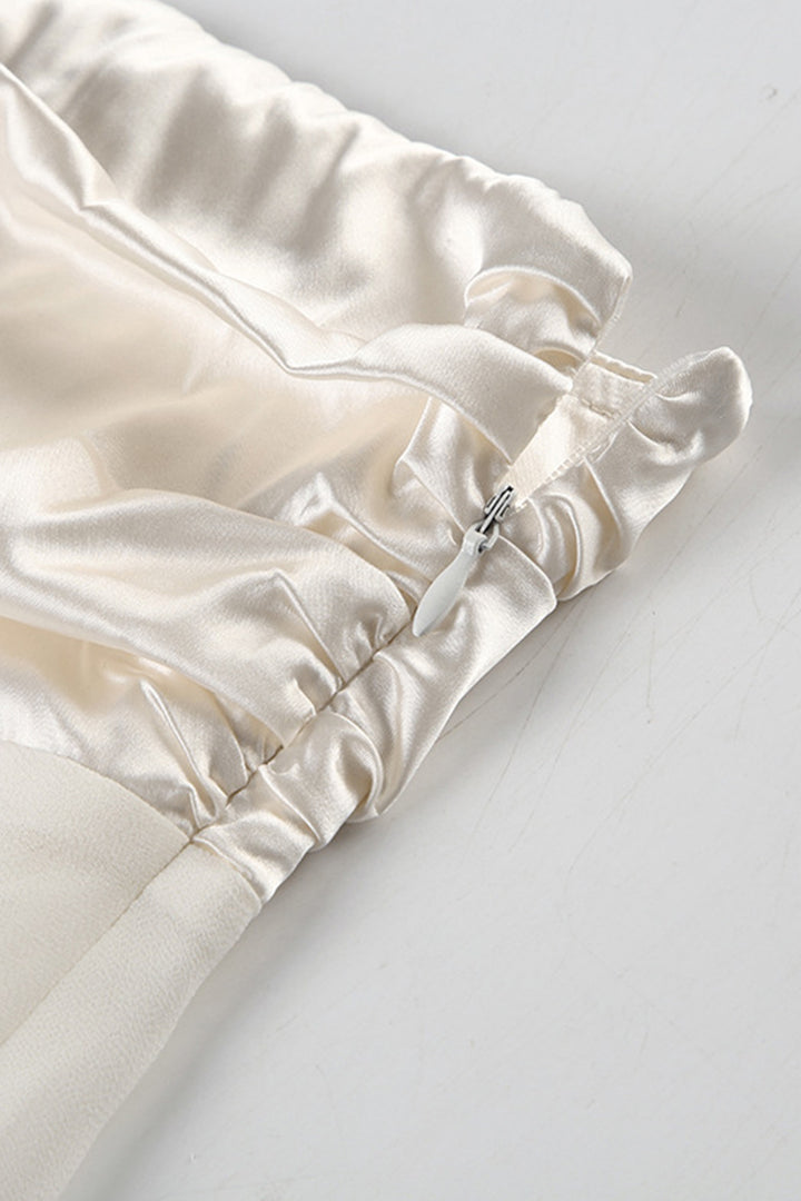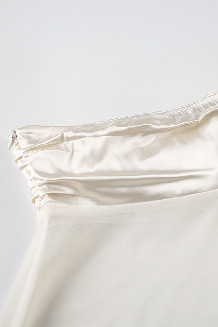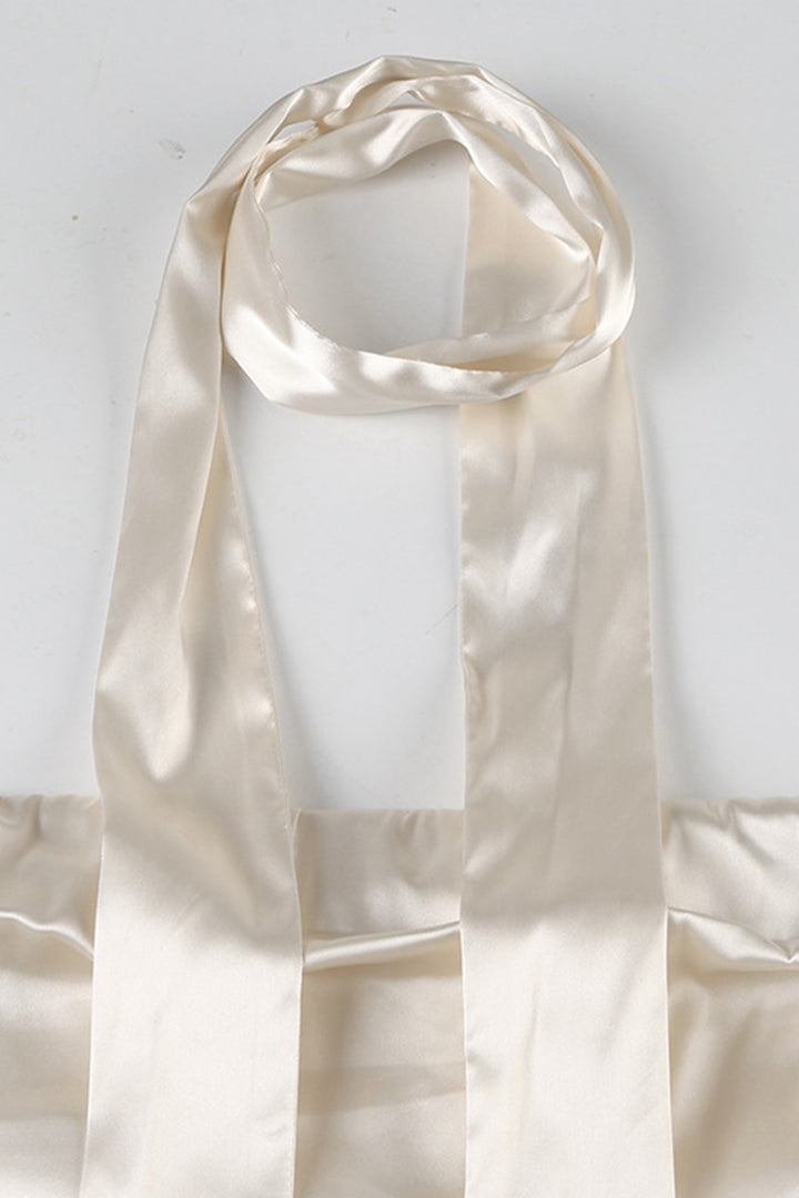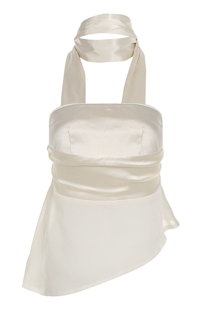 Tie Halter Mesh Pleated Bevel Hem Strapless Top