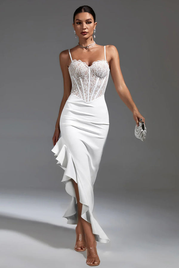 A white lace graduation dress brings together texture and tradition. From delicate floral overlays to intricate embroidered patterns, lace adds dimension without overpowering the look. Choose a fitted bodice with an A-line skirt for balance, or choose sheer sleeves for a romantic touch.