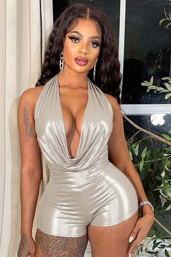 Metallic Silver Sleeveless Bodycon Romper Square Neck
