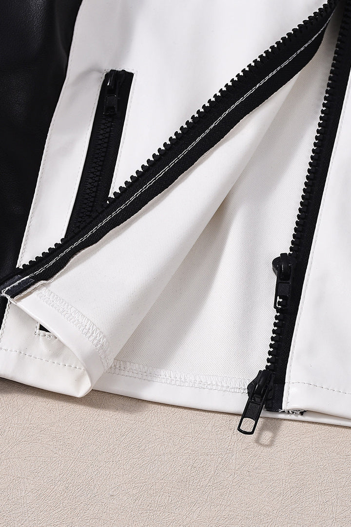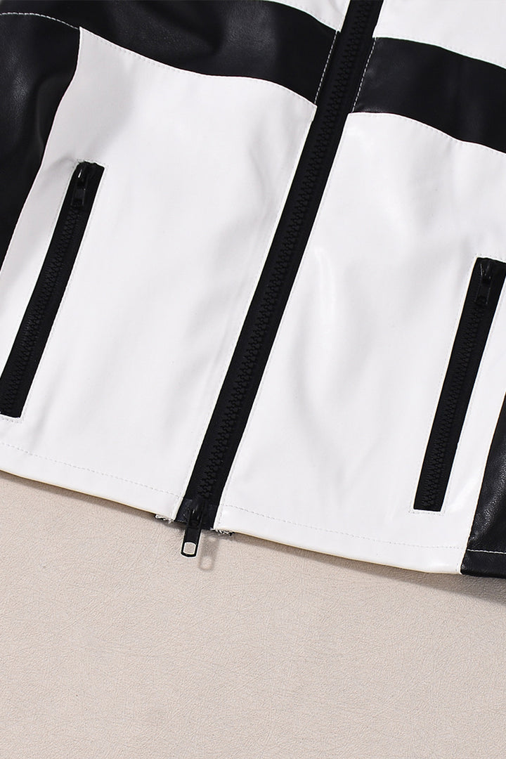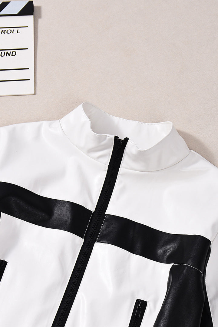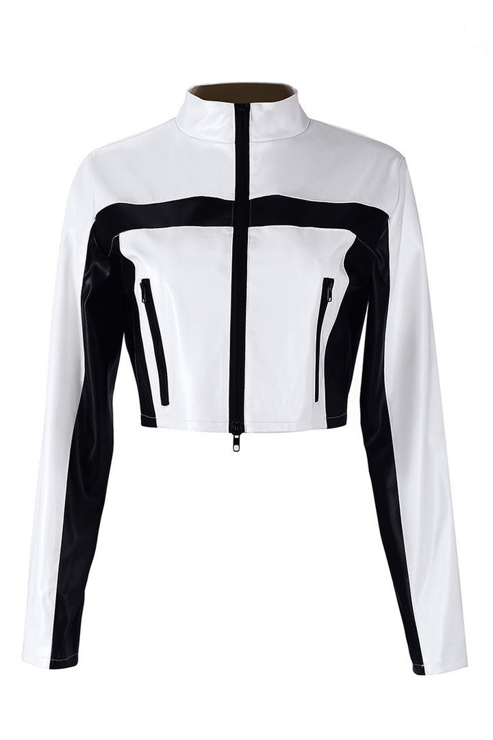 - Step into the spotlight with our stunning crop leather jacket, a perfect blend of edgy and chic. Crafted from high - quality materials, it features a bold black - and - white color scheme that makes a statement.