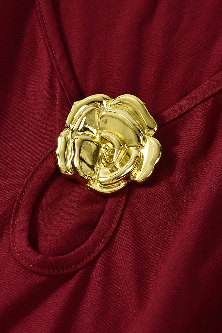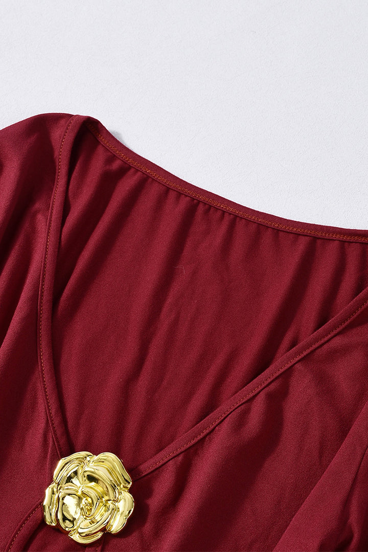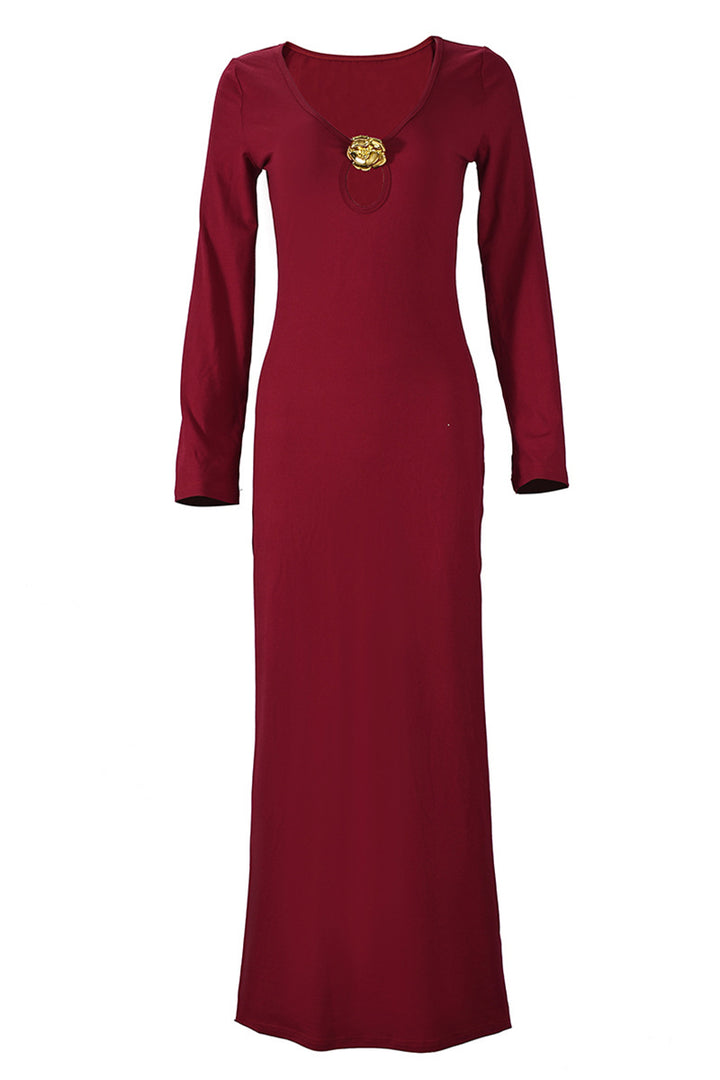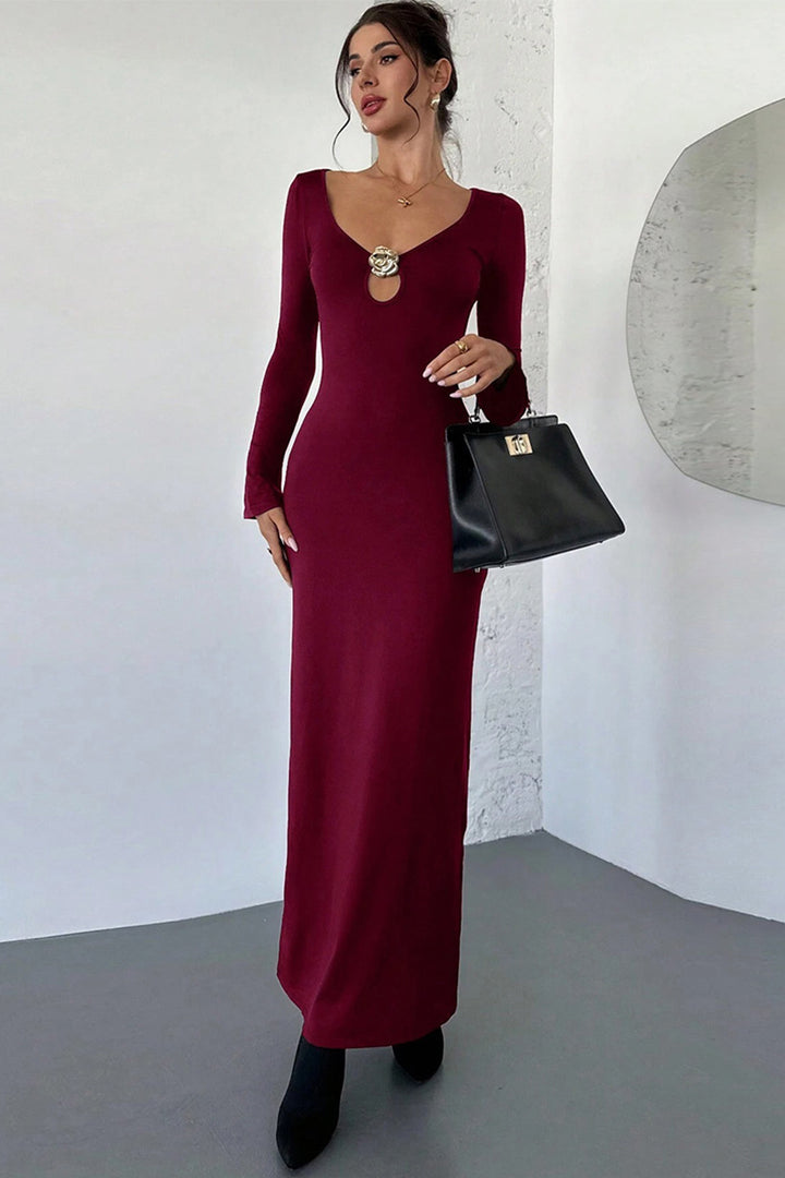 Metallic Embellishments V Neck Long Sleeved Maxi Dress