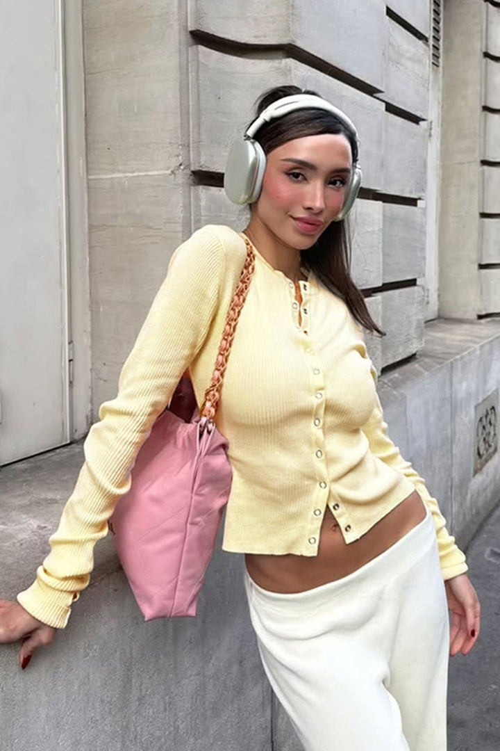 - Elevate your casual look with this timeless cream cardigan, crafted from ultra-soft fabric for all-day comfort. Featuring a classic collar, delicate buttons, and a versatile lightweight design, it pairs perfectly with jeans or dresses—just like our model’s chic beachside styling. Ideal for breezy days, coffee outings, or seaside strolls, this piece adds a touch of refined warmth to any outfit. Simple, elegant, and endlessly versatile. Your new go-to layer for understated sophistication.
