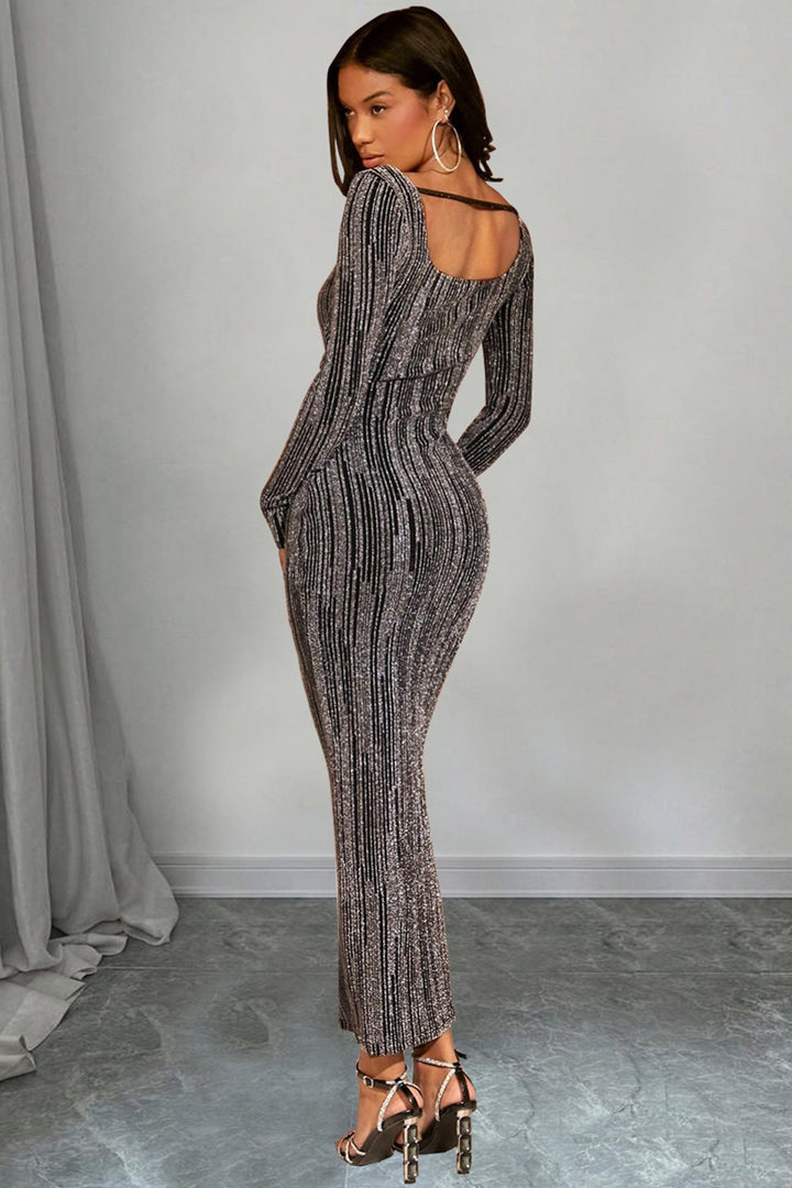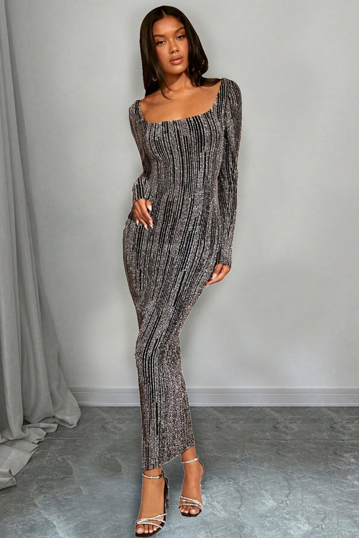 - Embrace timeless elegance in this chic striped maxi dress, featuring a flattering square neckline and long sleeves for refined sophistication. The vertical stripes create a sleek, elongating silhouette, while the soft fabric ensures all-day comfort and effortless movement. Perfect for brunch dates, evening events, or elevated everyday wear, this versatile piece pairs seamlessly with statement heels and minimalist jewelry. Designed for the modern woman who values both style and grace, this dress is your go-to for understated yet captivating allure.