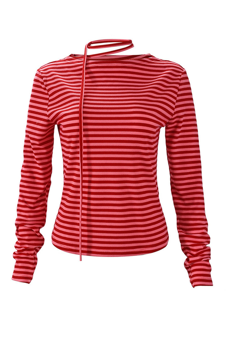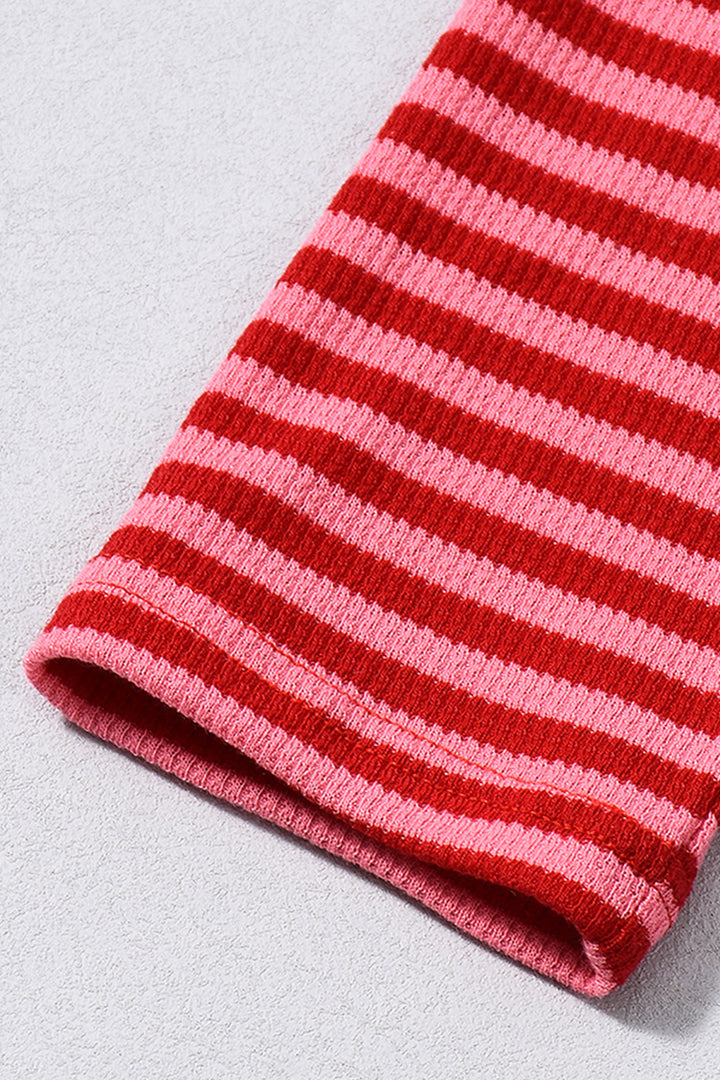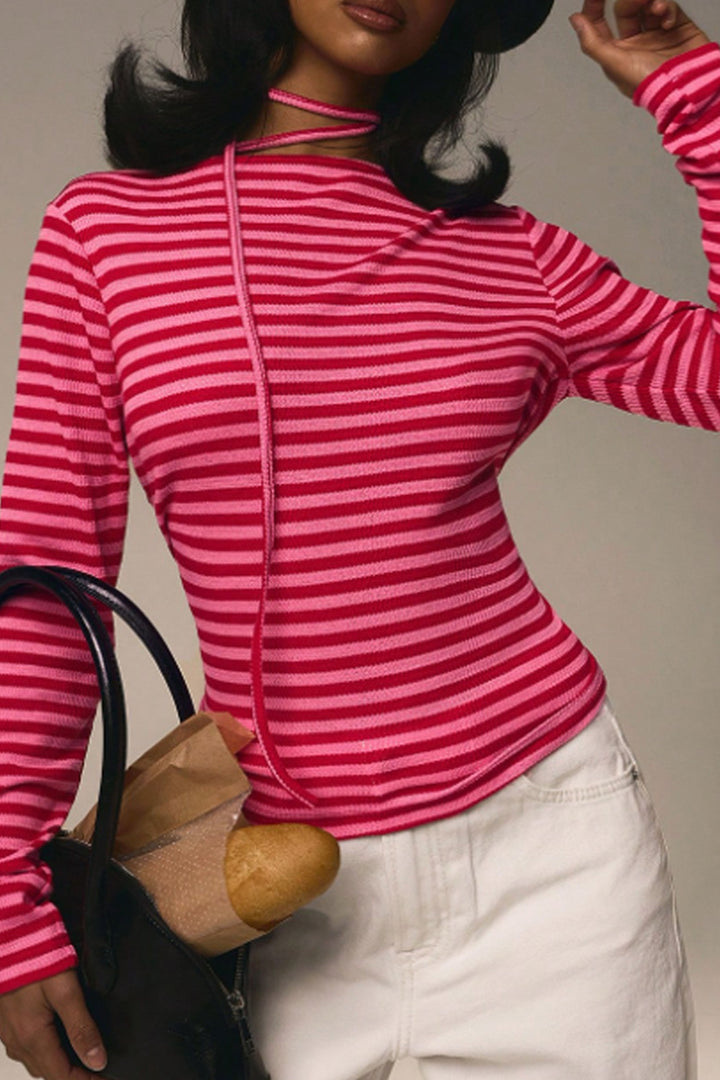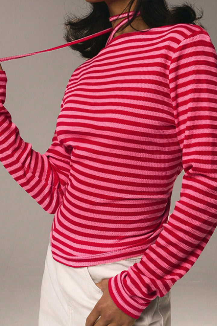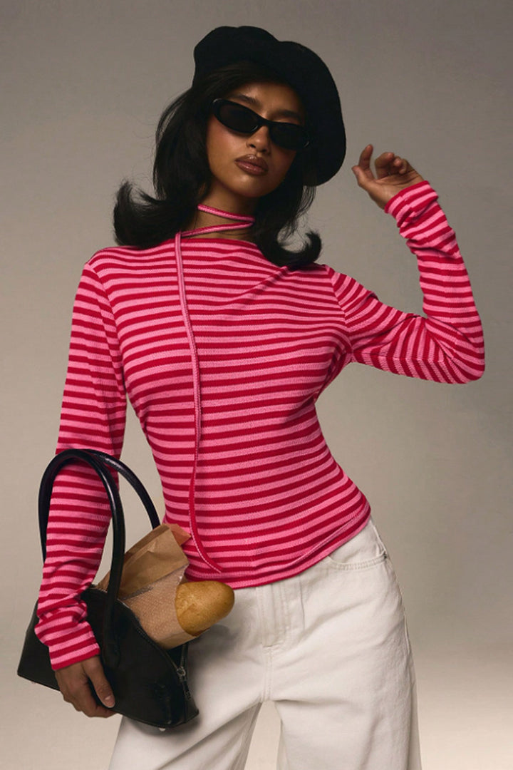 • Elevate your wardrobe with this must - have striped long sleeve top. The vibrant pink and white stripes create a eye catching contrast that's both trendy and timeless.