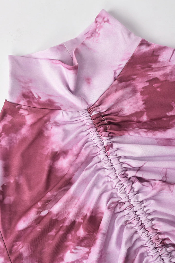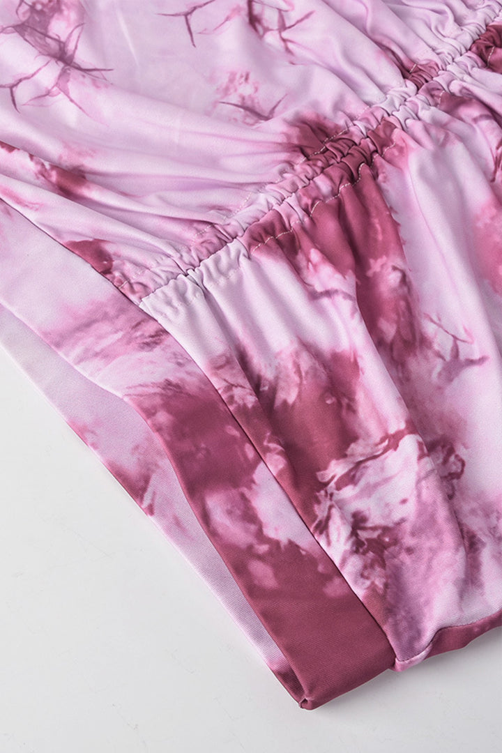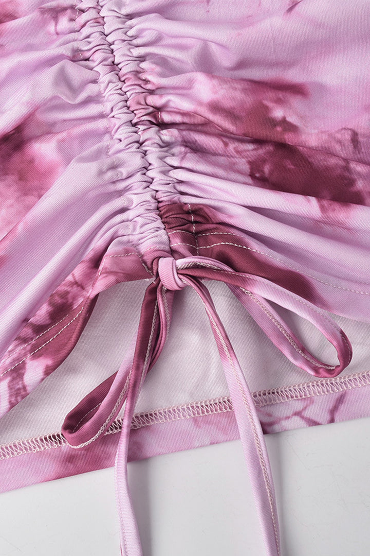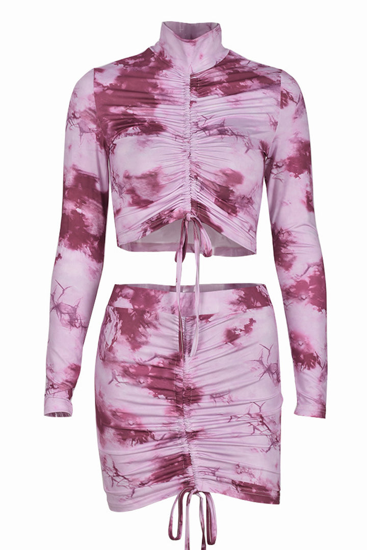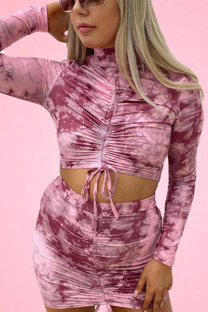 Tie Dye Long Sleeve Ruched Mini Skirt Set