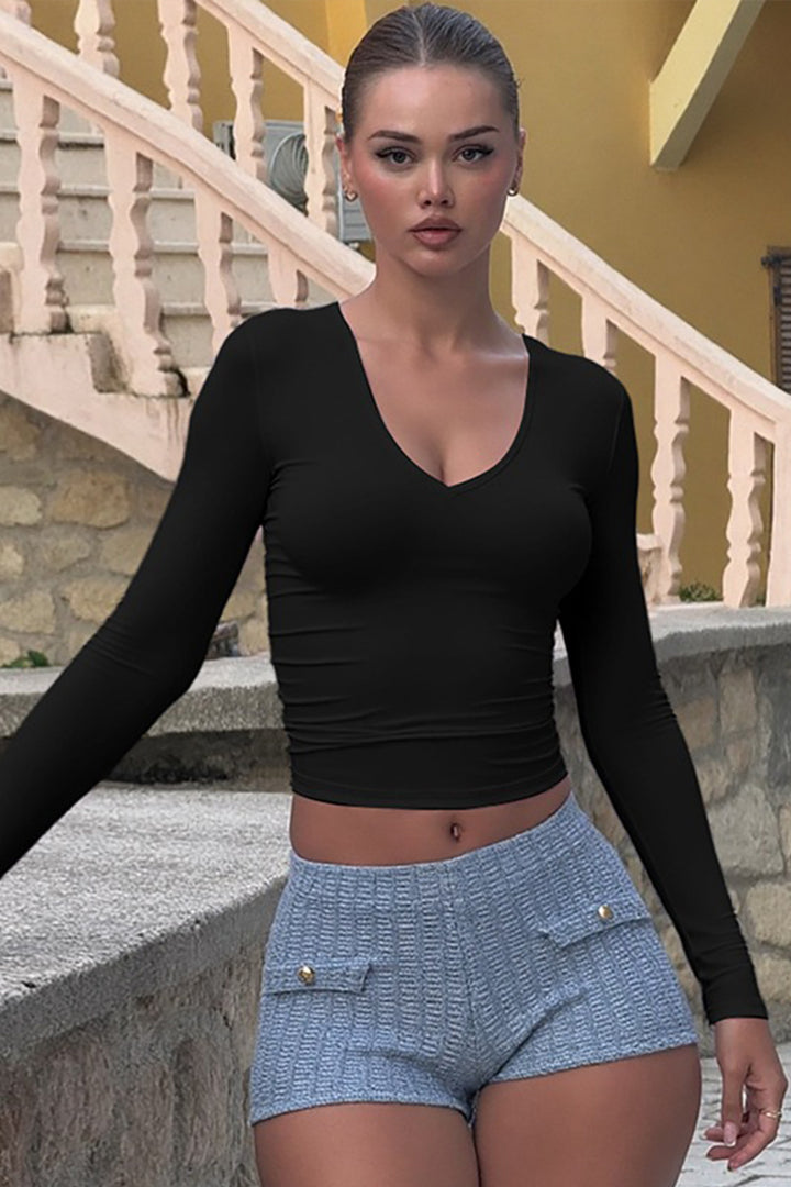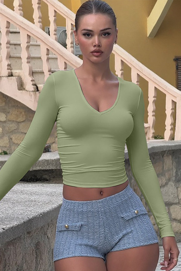 • Elevate your wardrobe with our stunning long - sleeve top! This piece features a flattering U neckline that adds a touch of elegance and a flattering silhouette. The soft, stretchy fabric hugs your curves in all the right places, providing both comfort and style. Whether you pair it with high - waisted shorts for a casual look or dress it up with a skirt and heels, it's incredibly versatile. Ideal for any season, it can be layered under a blazer in cooler weather or worn solo when it's warm. Don't miss out on this must - have addition to your collection!