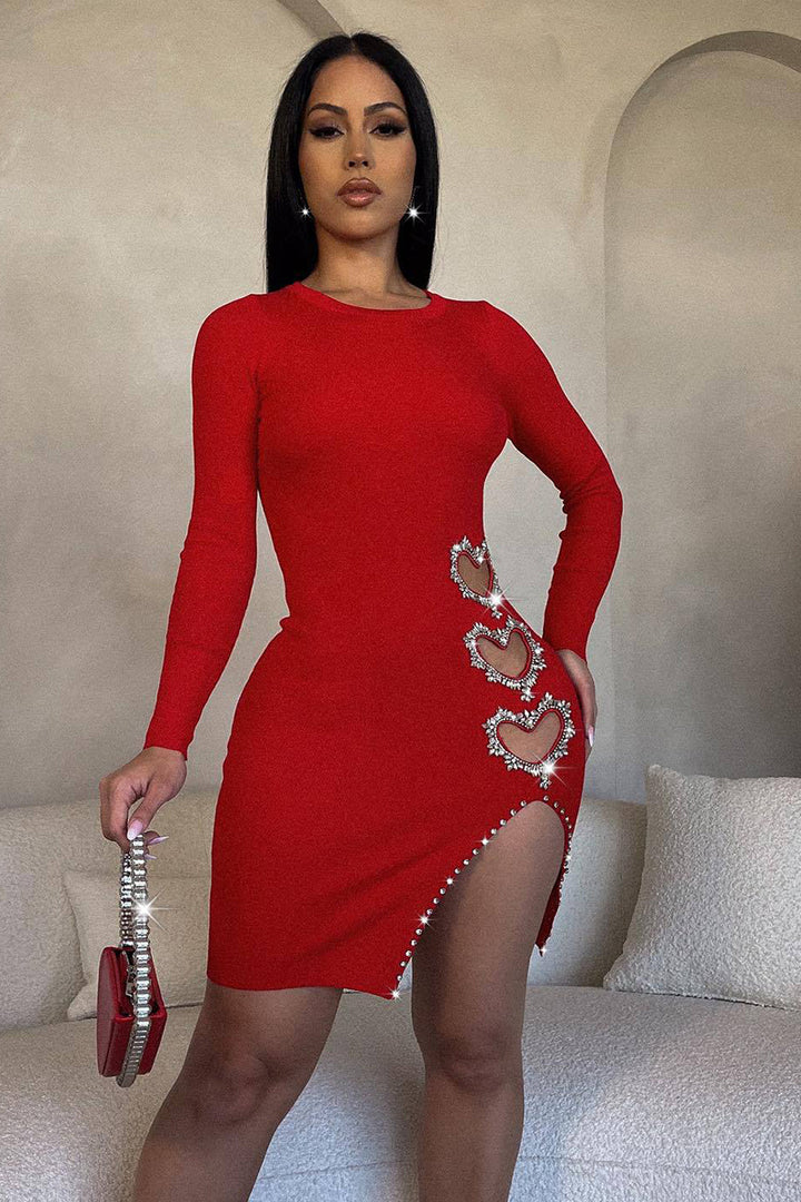 Diamond Loveheart Hollow Slit Hem Mini Dress