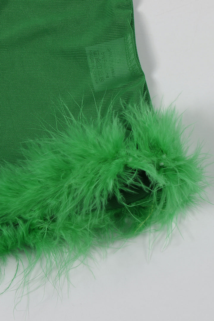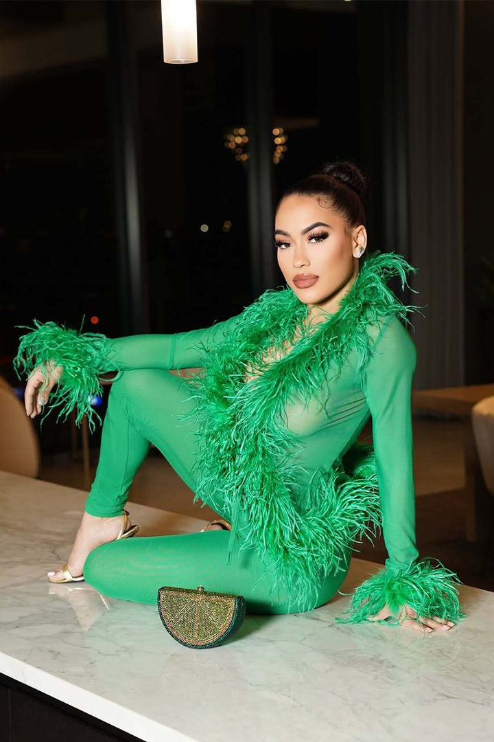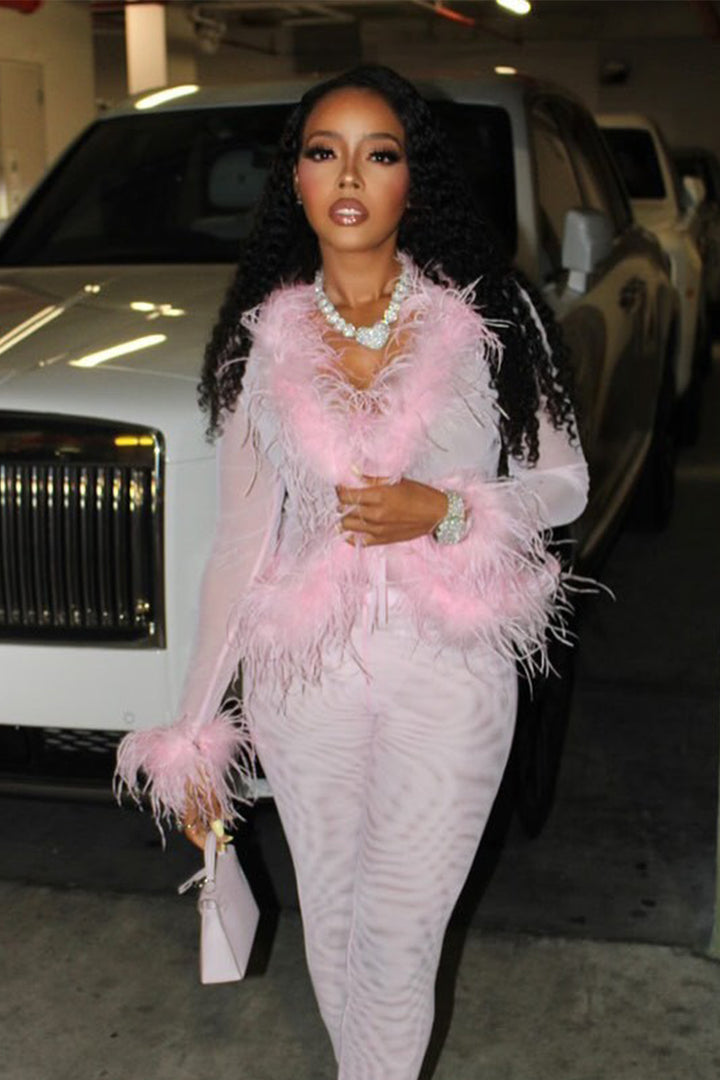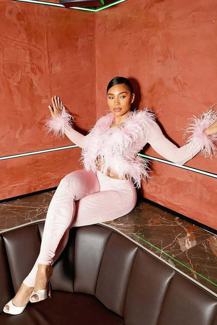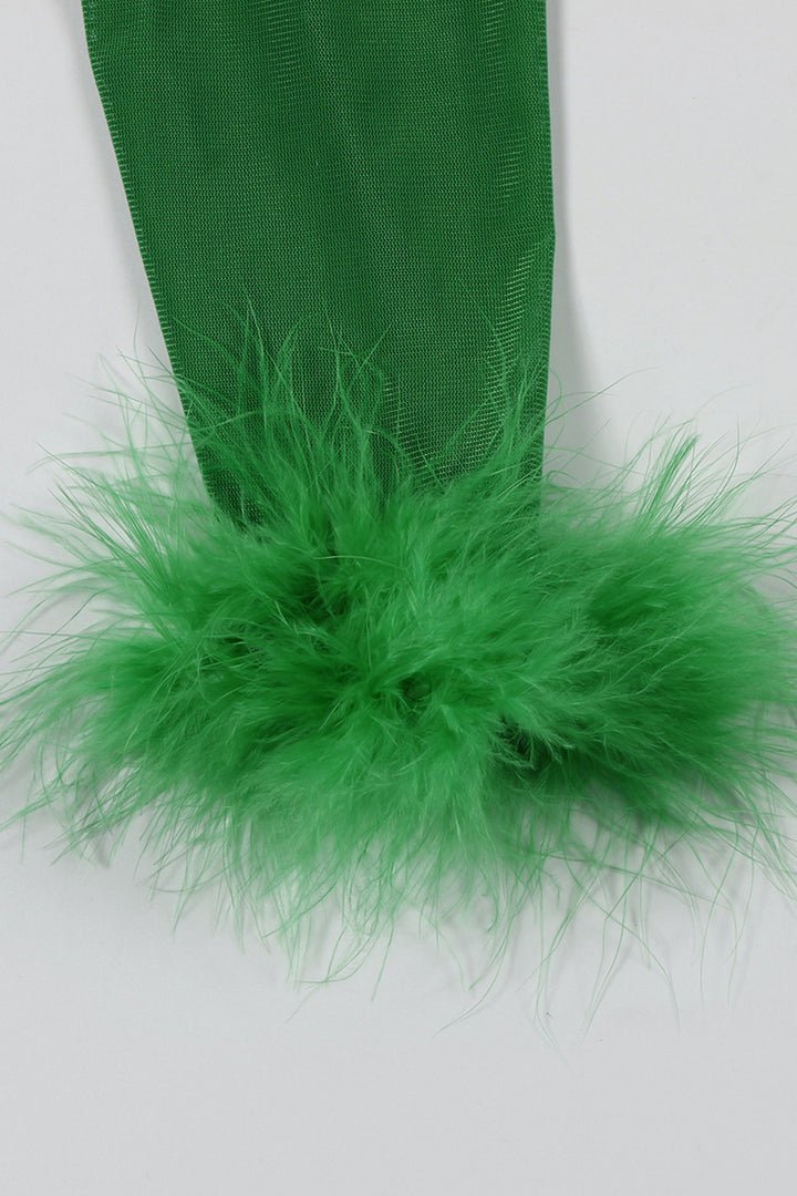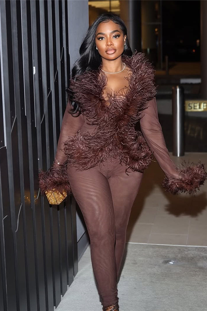 Feathers Patchwork Long Sleeve Solid Pants Set