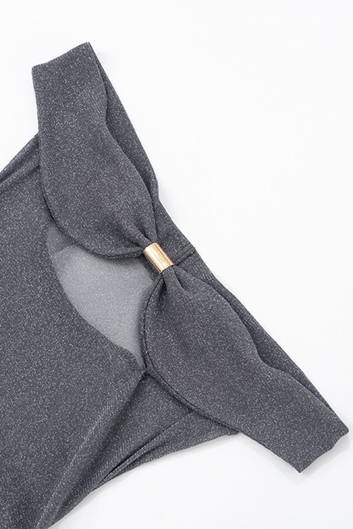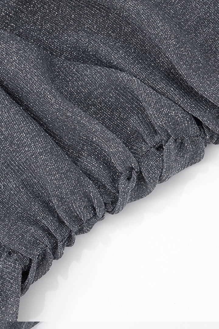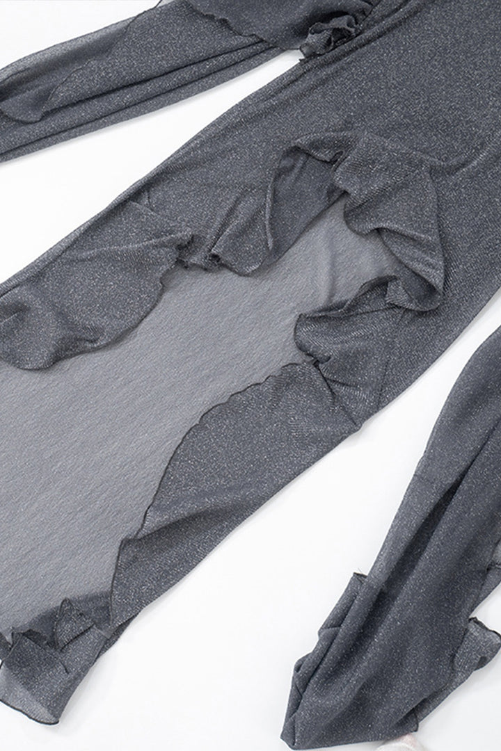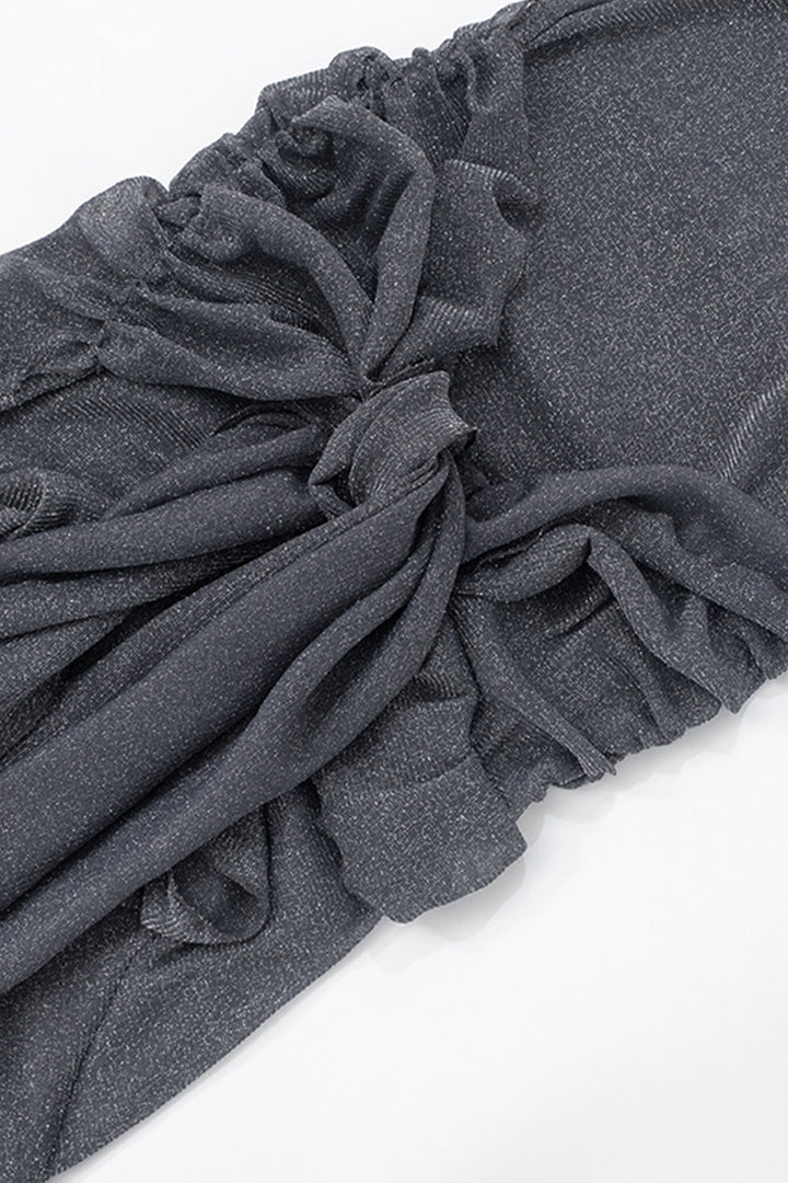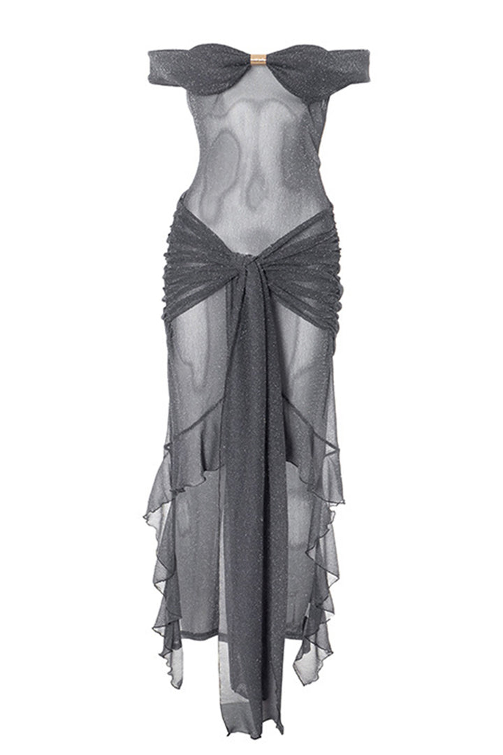 Sequin Mesh See Through Twisted Ruffled Slit Dress
