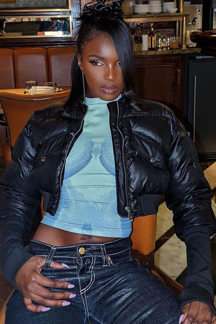 - Neckline: Mock neck