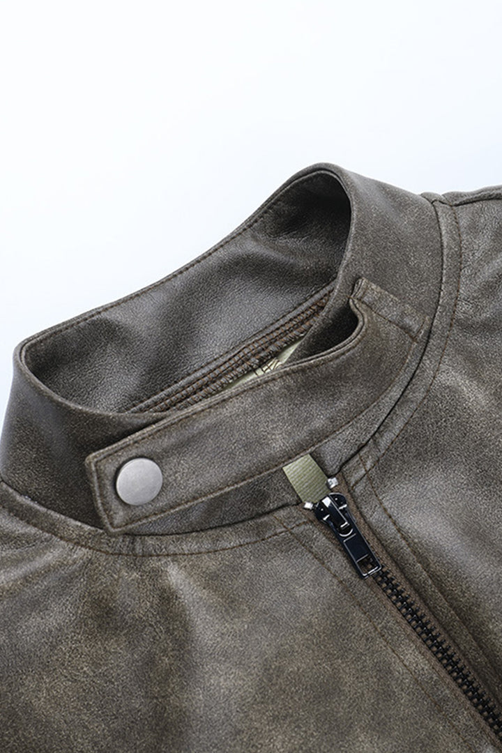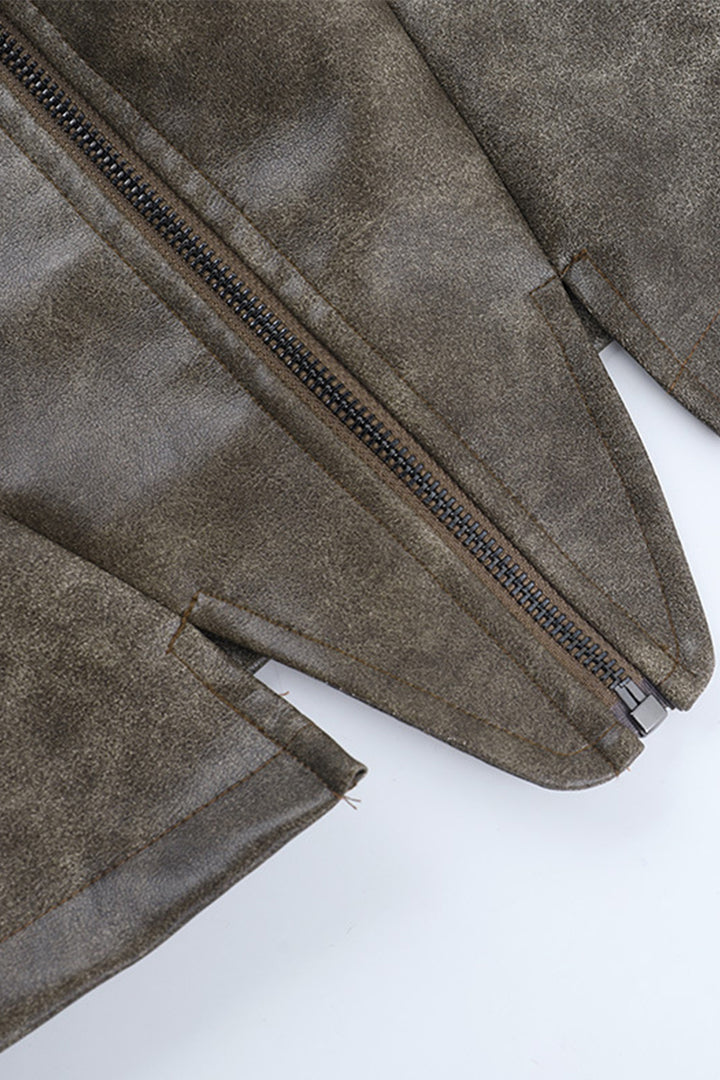 Faux Leather Zipper Irregular Hem Jacket