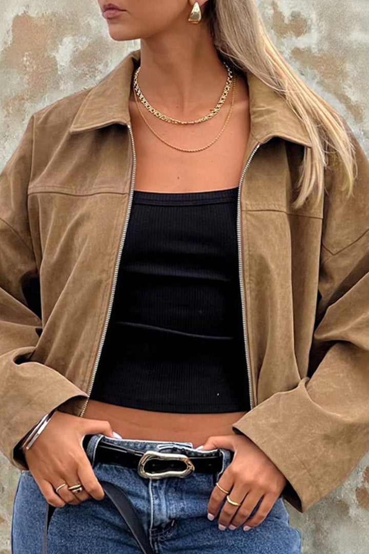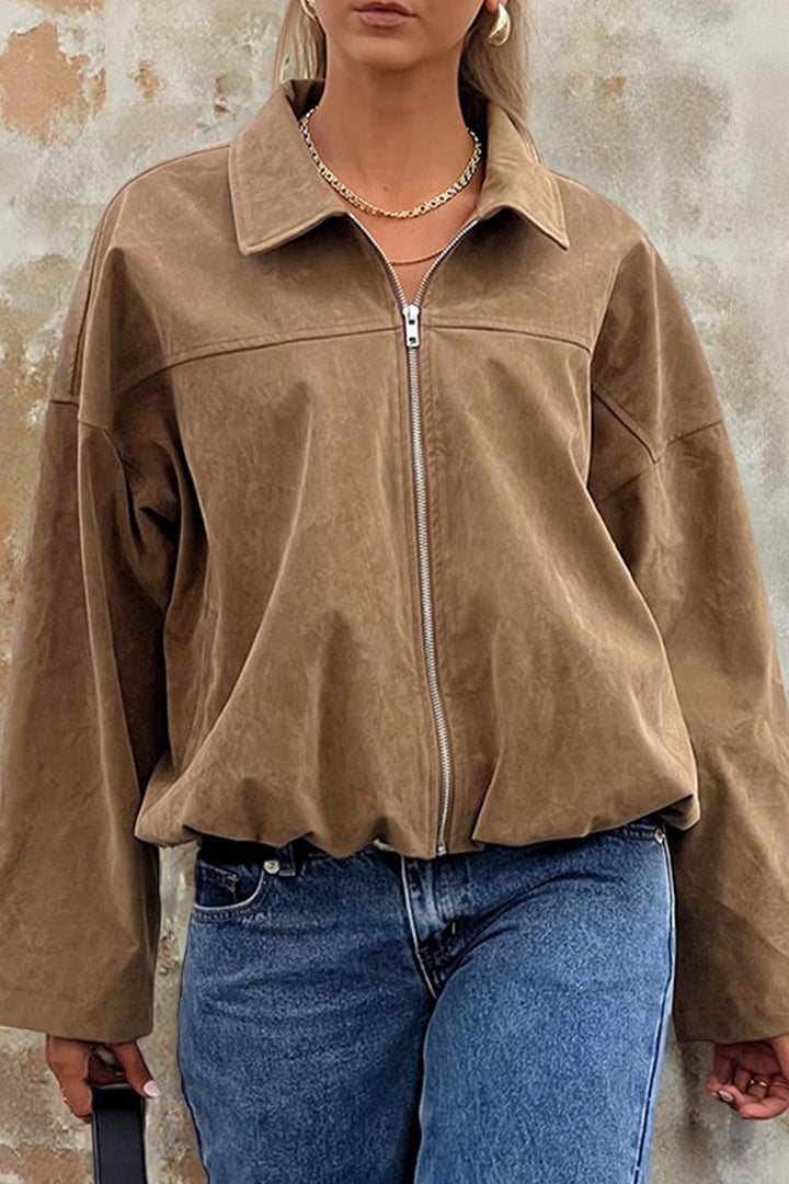 - Elevate your wardrobe with our trendy suede - like jacket! This piece features a classic collar and a front zipper for easy wear. Its loose fit offers both comfort and a touch of effortless style. Whether paired with jeans for a casual look or dressed up over a simple top, it's incredibly versatile. The neutral color makes it easy to match with any outfit in your collection. Don't miss out on this must - have outerwear that combines fashion and functionality!