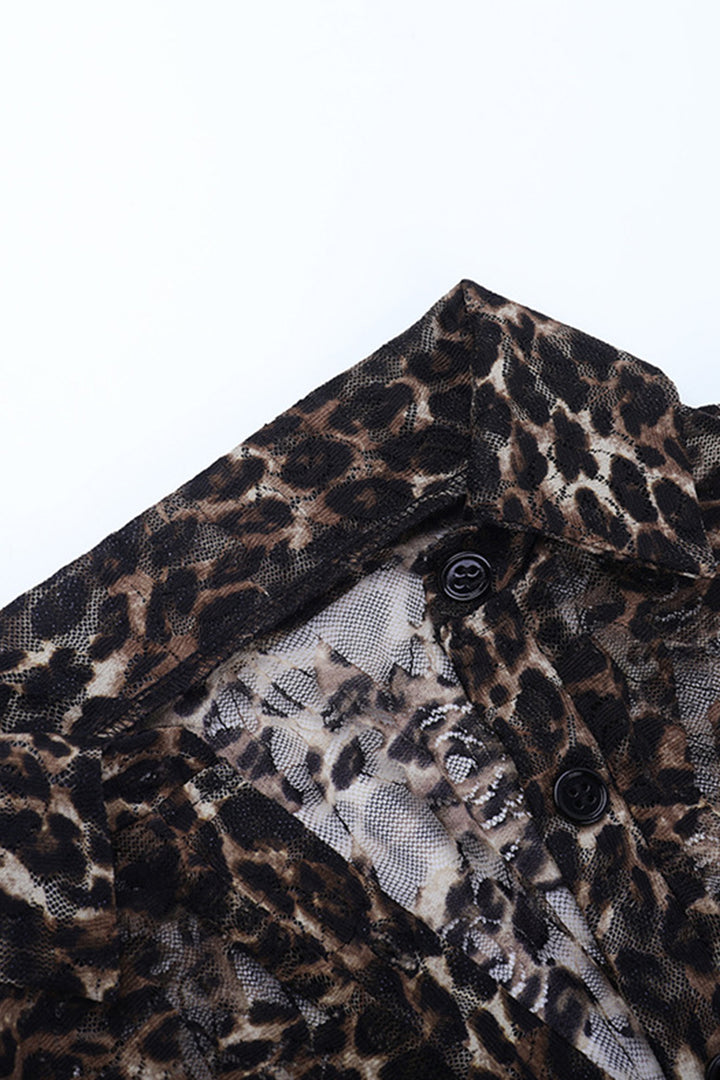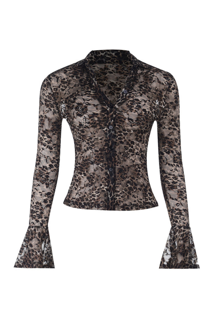 - Crafted for the bold and the beautiful, this leopard print blouse is a statement piece that commands attention. The intricate print mimics the wild elegance of a leopard, while the sheer fabric adds a touch of allure.