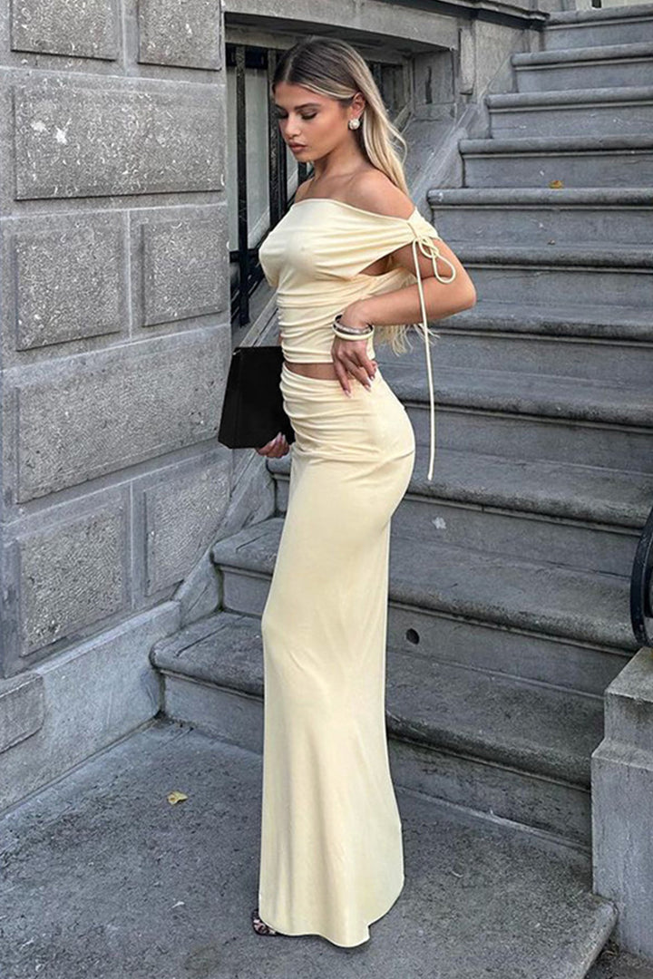 - Emphasize the irresistible magnetism of your silhouette with our Maxi Skirt Set. Elevate your fashion statement with the essential chain belt for a daring, avant-garde touch. Ideal for any casual occasion, accessorize to elevate your appearance.
