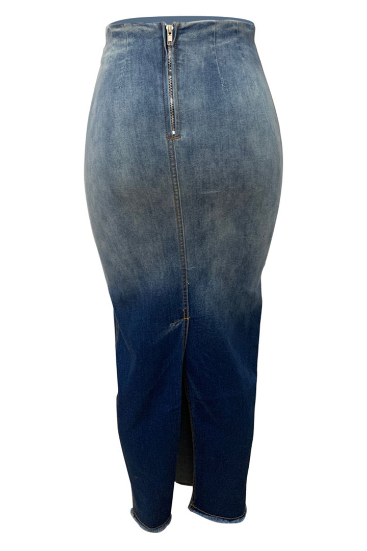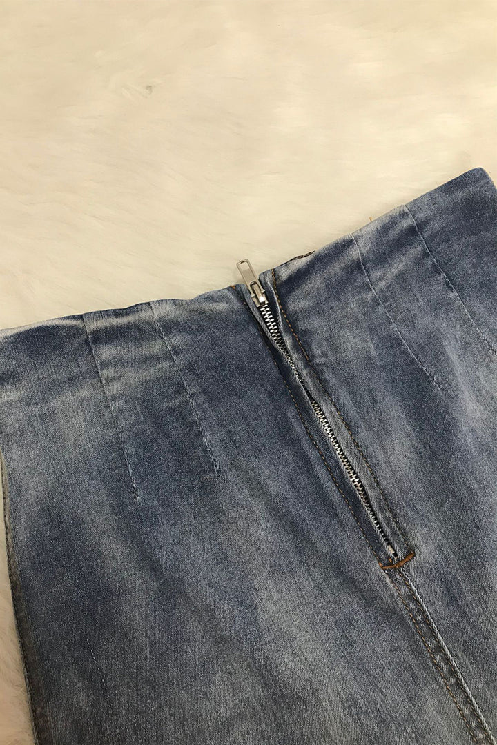 - With endless styling options, this beautiful denim dichromatic skirt compliments the body like no other!