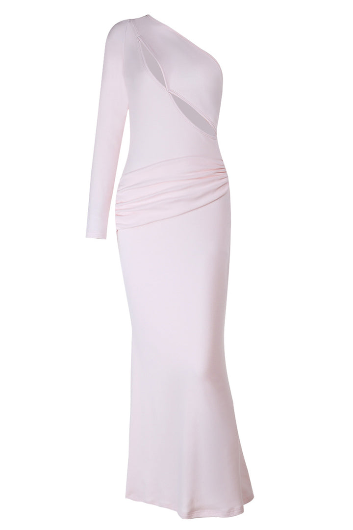 - Step into sophistication with our one shoulder asymmetrical maxi dress! This piece features a daring one shoulder design that shows off your clavicle and adds a touch of edginess. The flowing silhouette drapes gracefully to the floor, creating a feminine and romantic look. Crafted from high quality fabric, it hugs your curves in all the right places while providing comfort throughout the day or night. Whether it's for a cocktail party, a wedding guest appearance, or a fancy dinner, this dress is sure to turn heads.