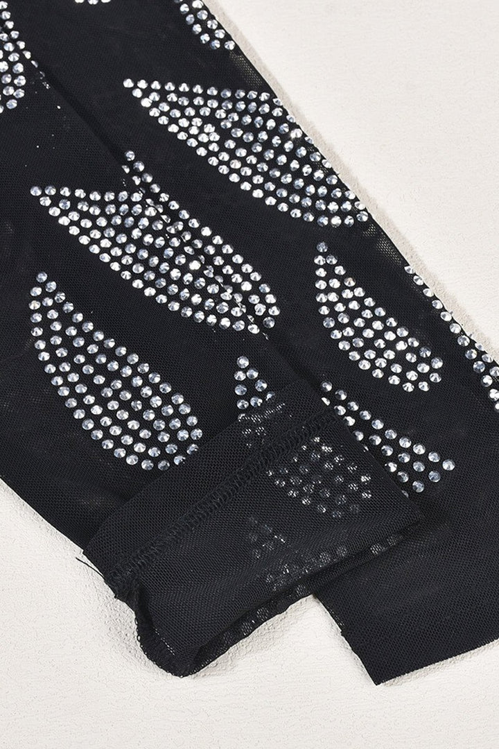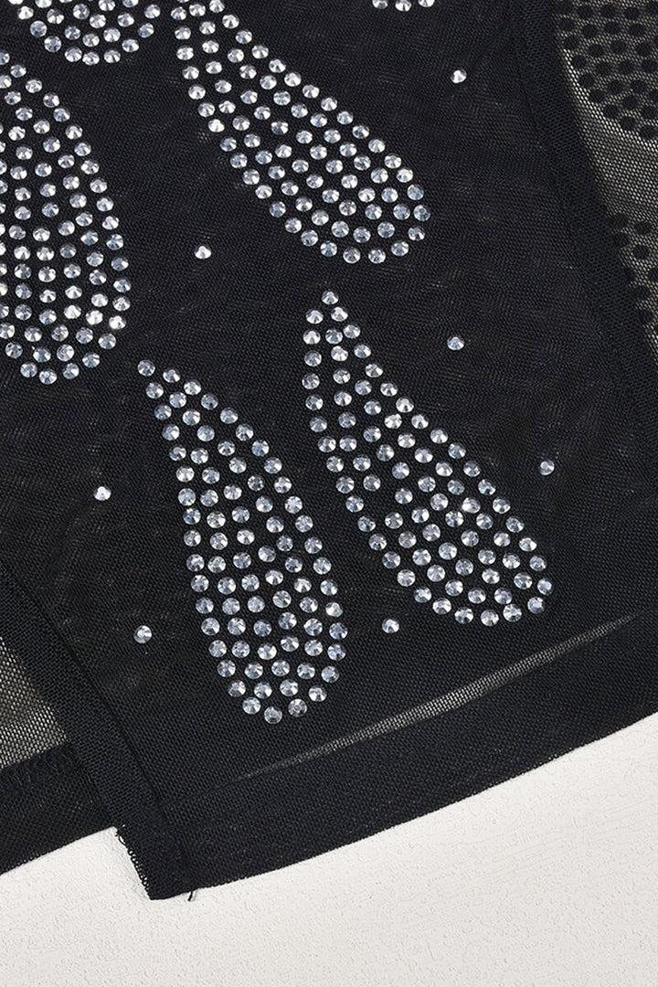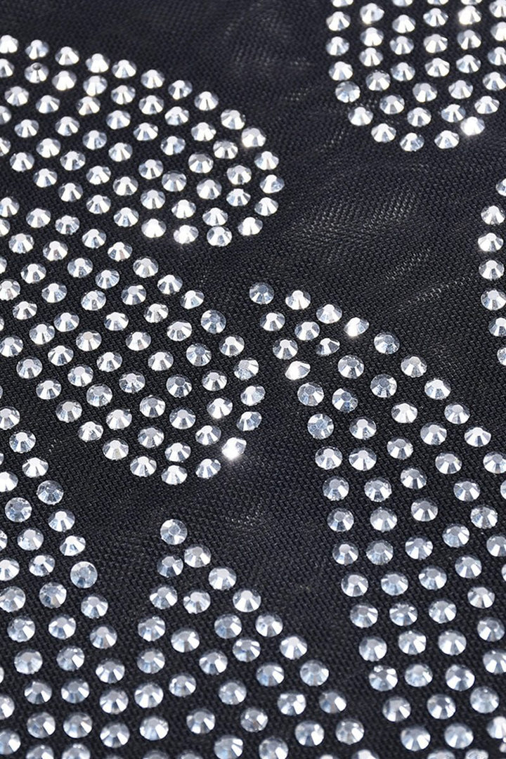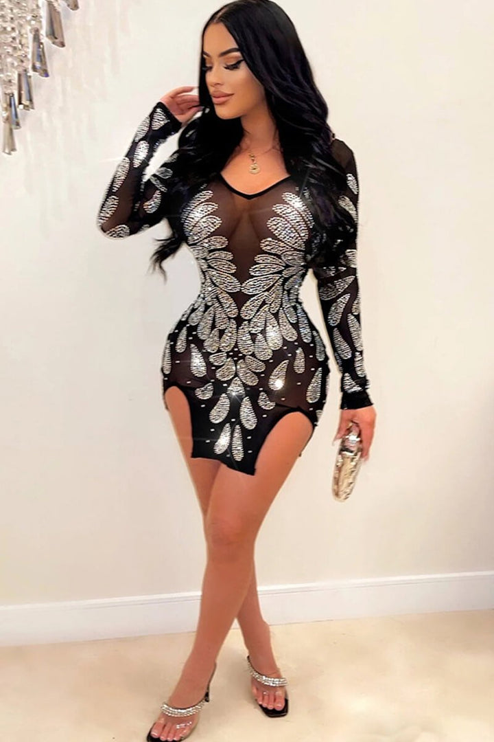See Through Mesh Irregular Slit Mini Dress With Rhinestone