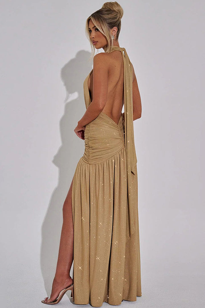 - Emphasize the irresistible magnetism of your silhouette with our Maxi Dress. Elevate your fashion statement with the essential chain belt for a daring, avant-garde touch. Ideal for any casual occasion, accessorize to elevate your appearance.