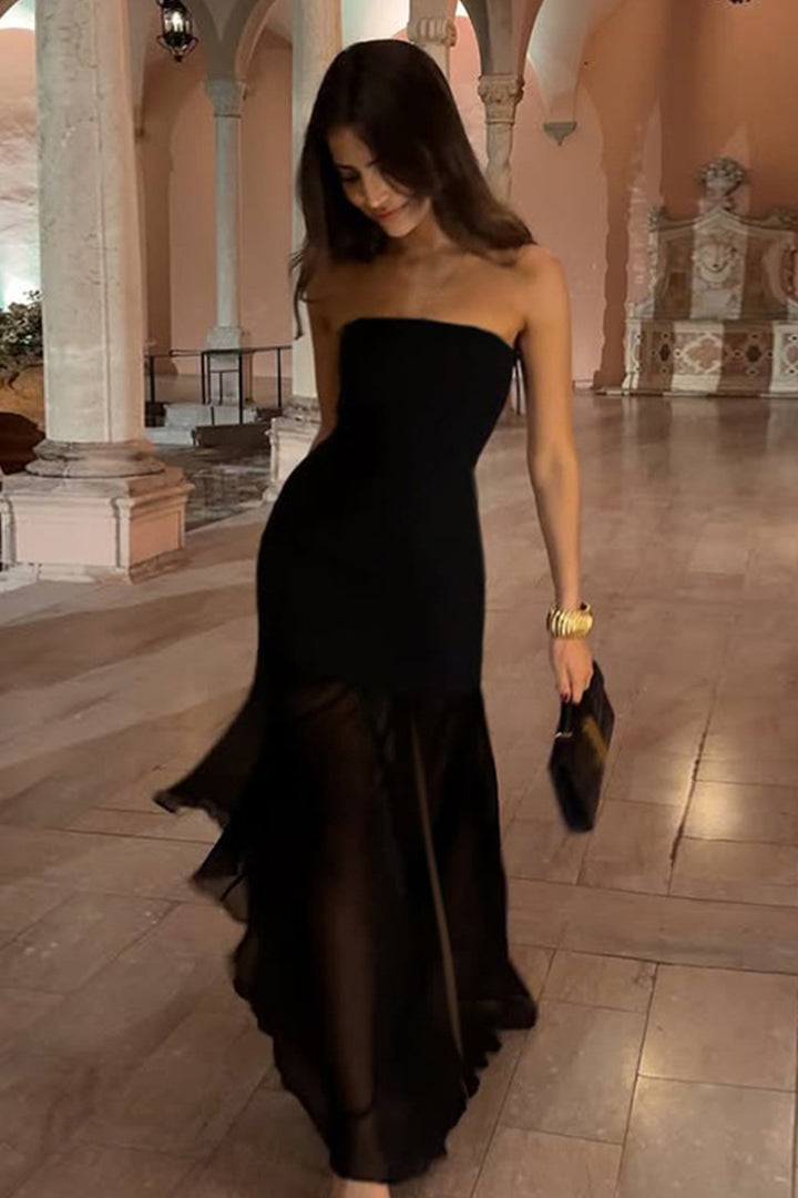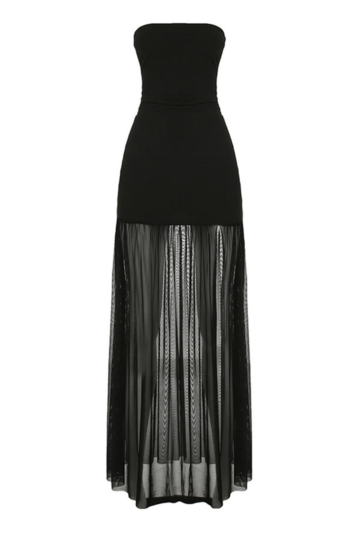 - Elevate your style with our exquisite strapless maxi dress! The fitted bodice hugs your curves in all the right places, while the flowing tulle skirt adds a touch of ethereal elegance. It's perfect for a night out or a special occasion. The contrast between the opaque top and the semi - sheer bottom creates a unique visual effect. Step into the spotlight and make a statement with this stunning piece!