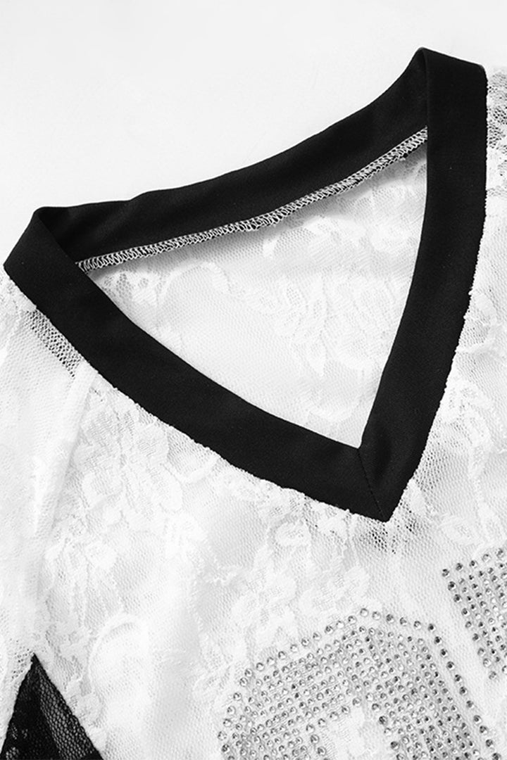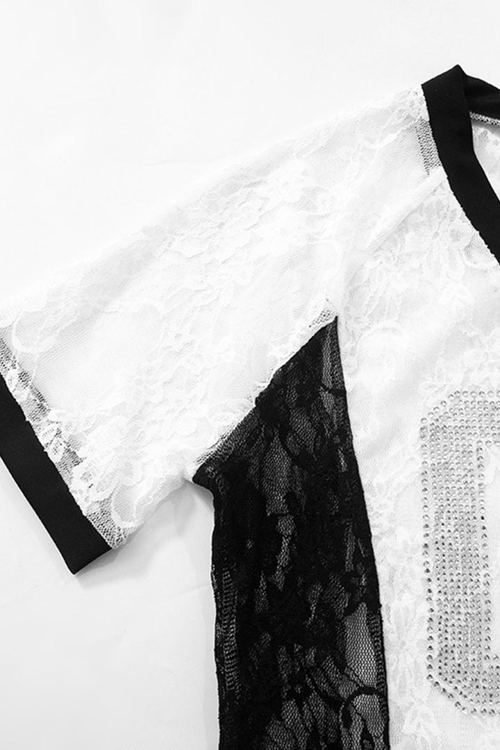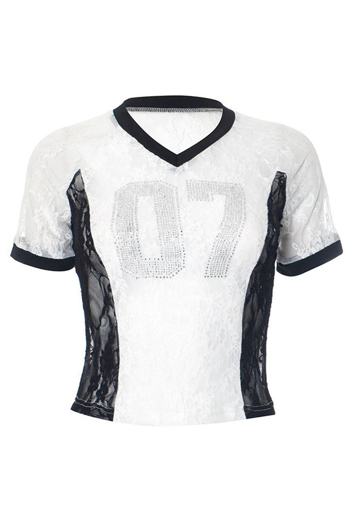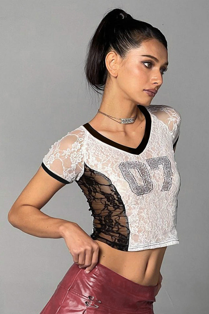 - Emphasize the irresistible magnetism of your silhouette with our Lace Short Sleeve Top. Elevate your fashion statement with the essential chain belt for a daring, avant-garde touch. Ideal for any casual occasion, accessorize to elevate your appearance.